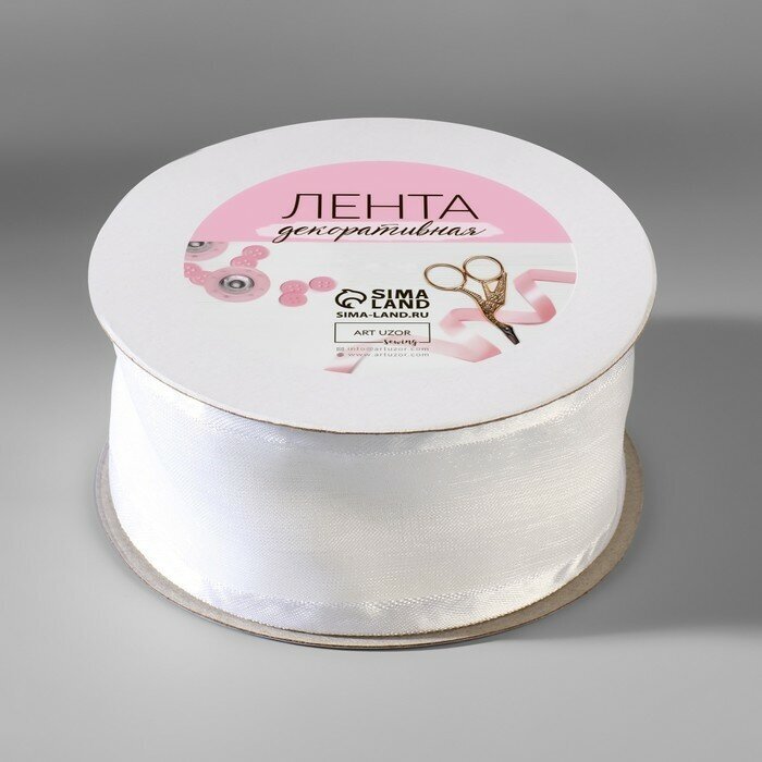 Лента декоративная, капроновая/атласная, 40 мм, 18 ± 1 м, цвет белый информация:
