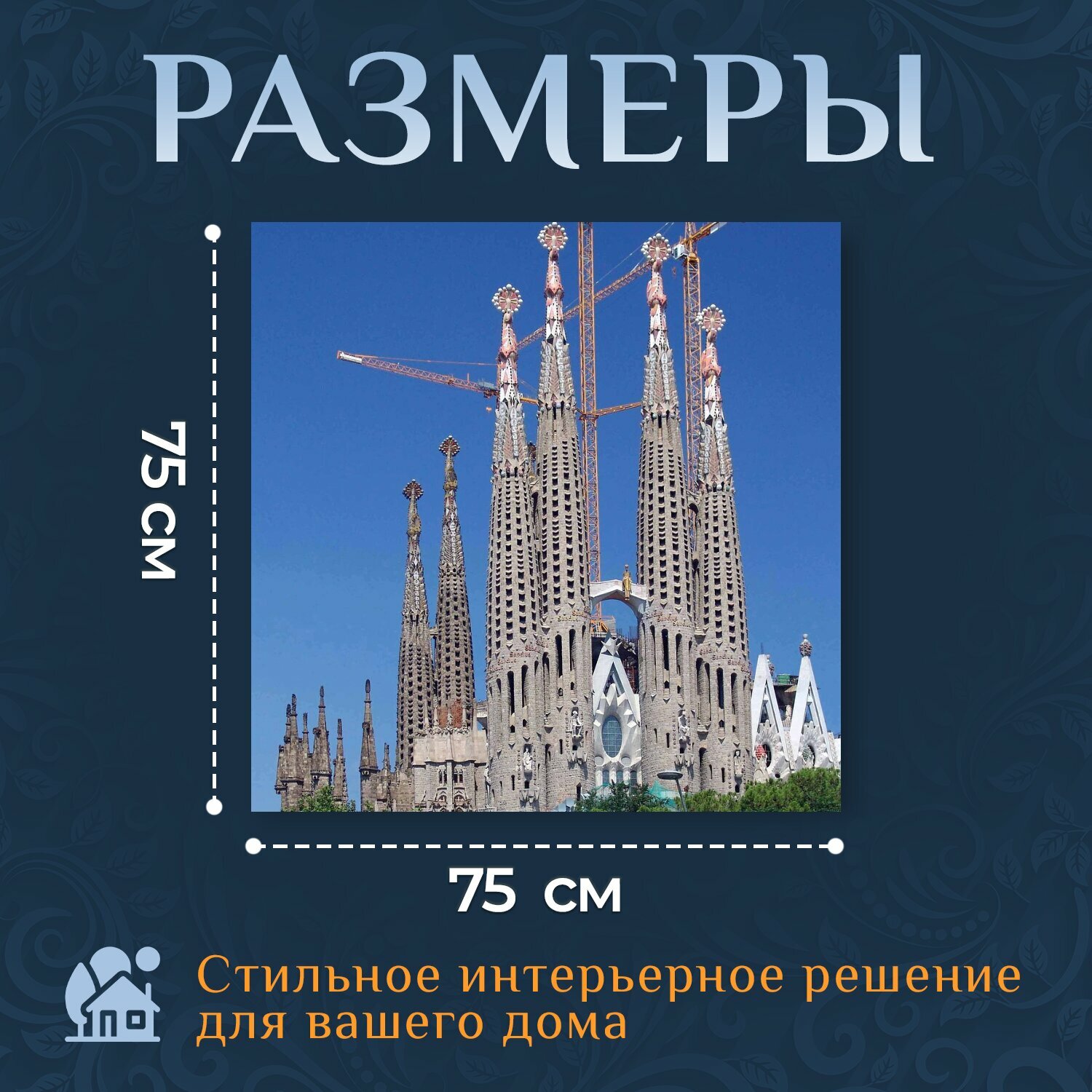 Картина на холсте "Саграда фамилия, барселона, испания" на подрамнике 75х75 см. для интерьера информация: