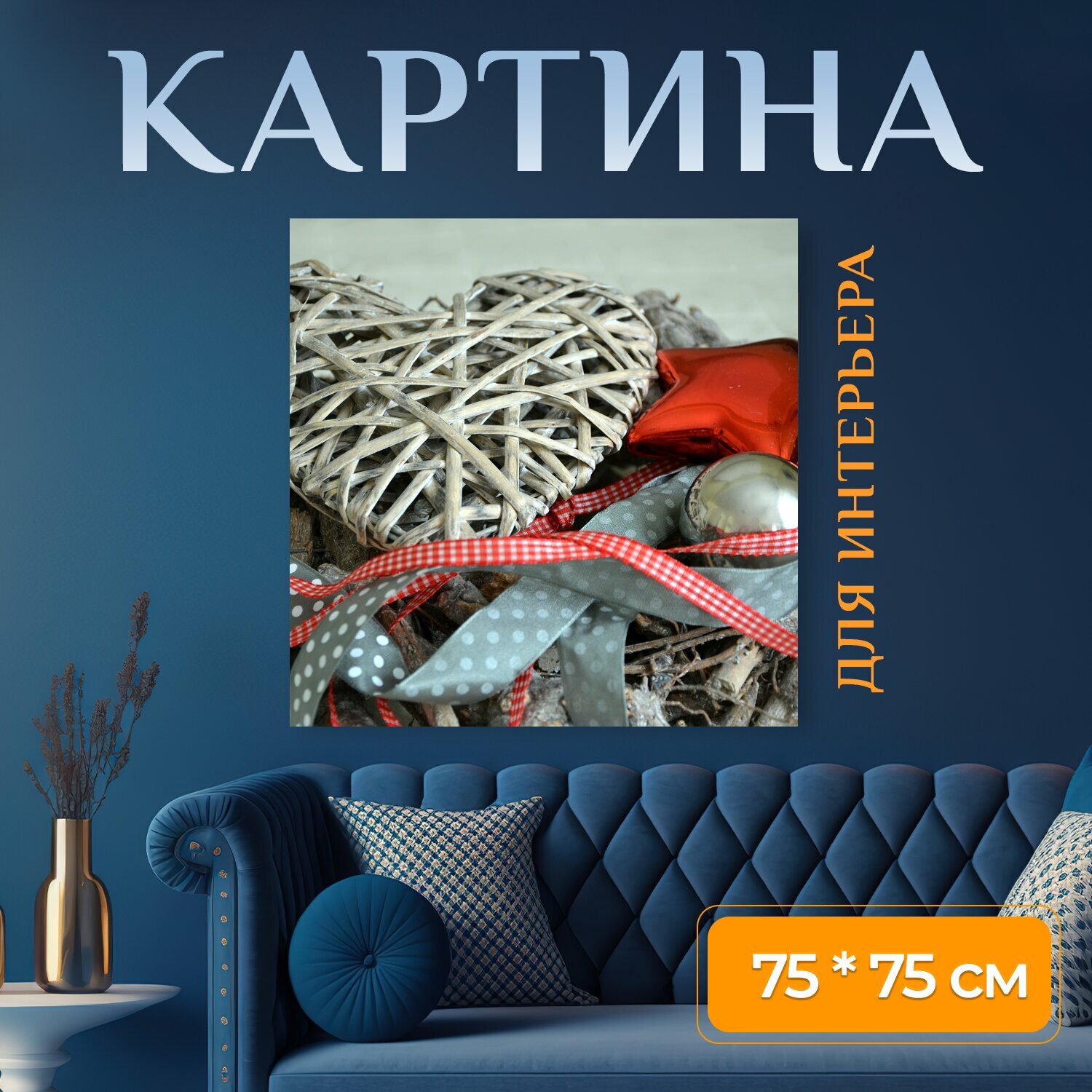 Картина на холсте "Рождественские украшения, рождество, адвент" на подрамнике 75х75 см. для интерьера информация: