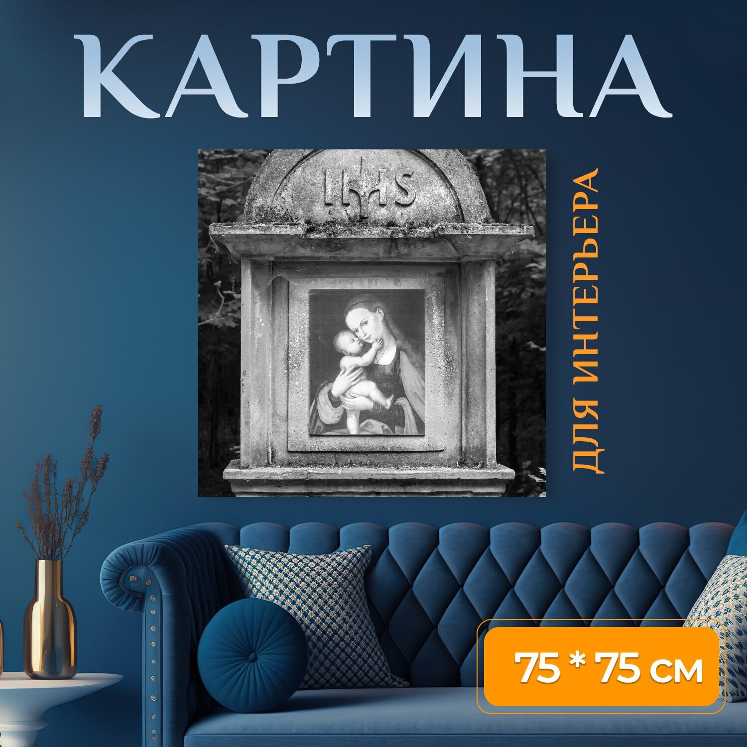 Картина на холсте "Придорожный храм, мария, иисус" на подрамнике 75х75 см. для интерьера информация: