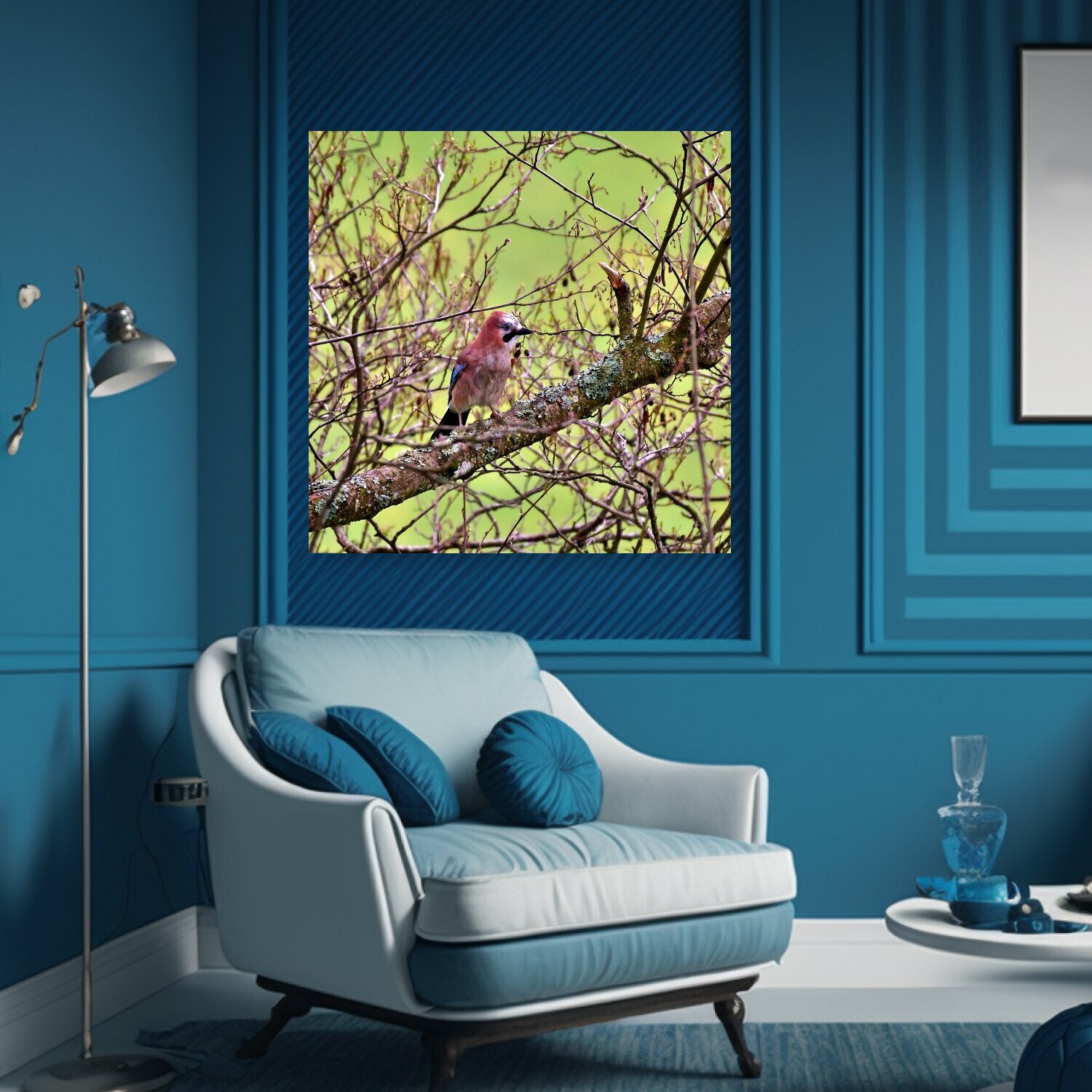 Картина на холсте "Джей, птица, сойка" на подрамнике 75х75 см. для интерьера информация: