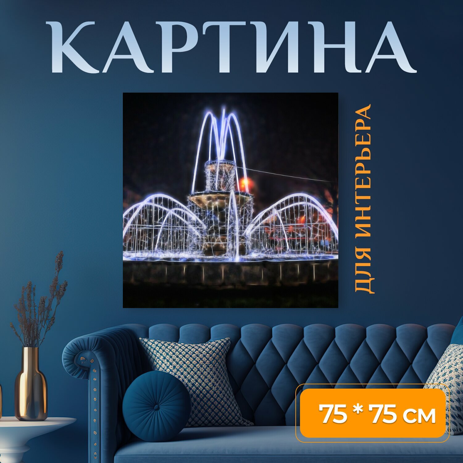 10 цен на Картина на холсте "Обои на стену, фонтан, свет" на подрамнике 75х75 см. для интерьера