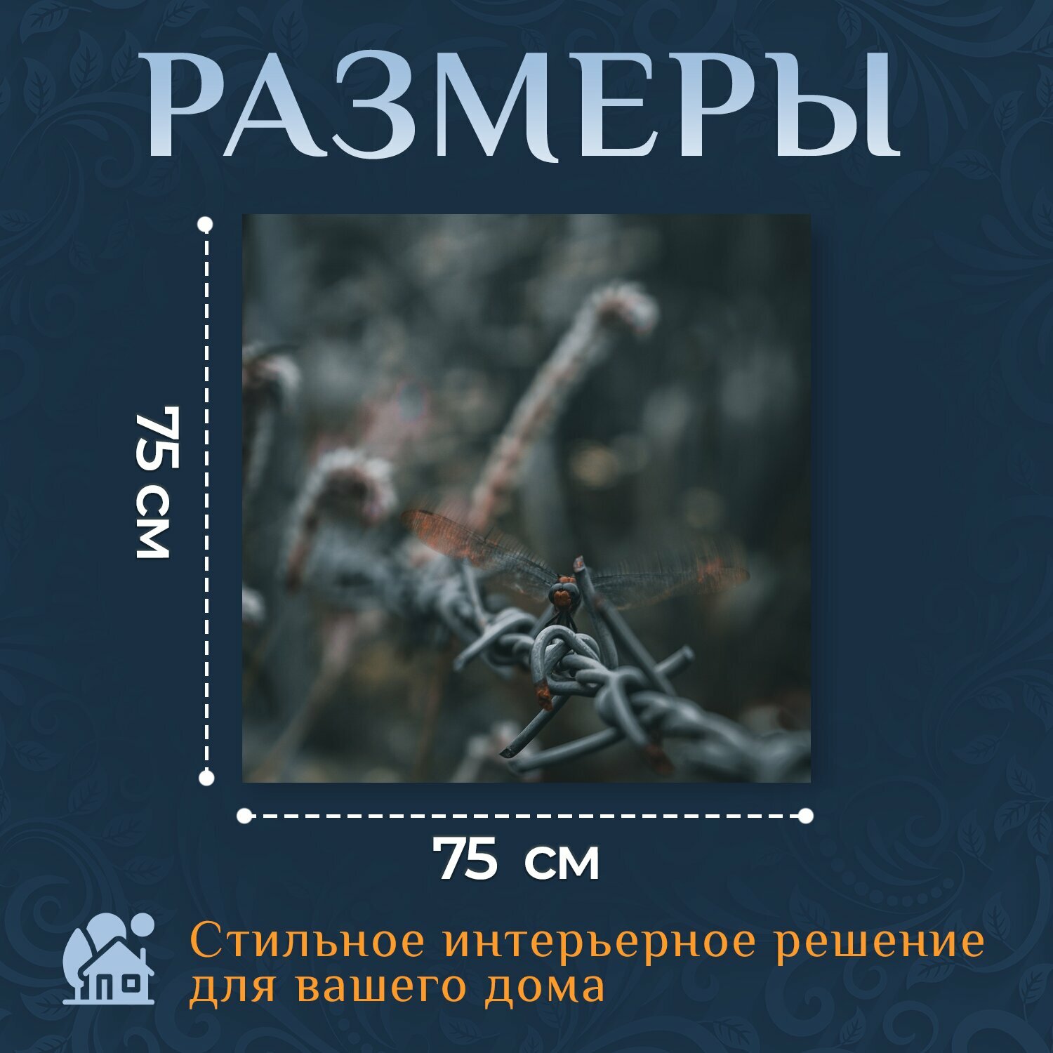 Отзывы на Картина на холсте "Стрекоза, насекомое, колючая проволока" на подрамнике 75х75 см. для интерьера