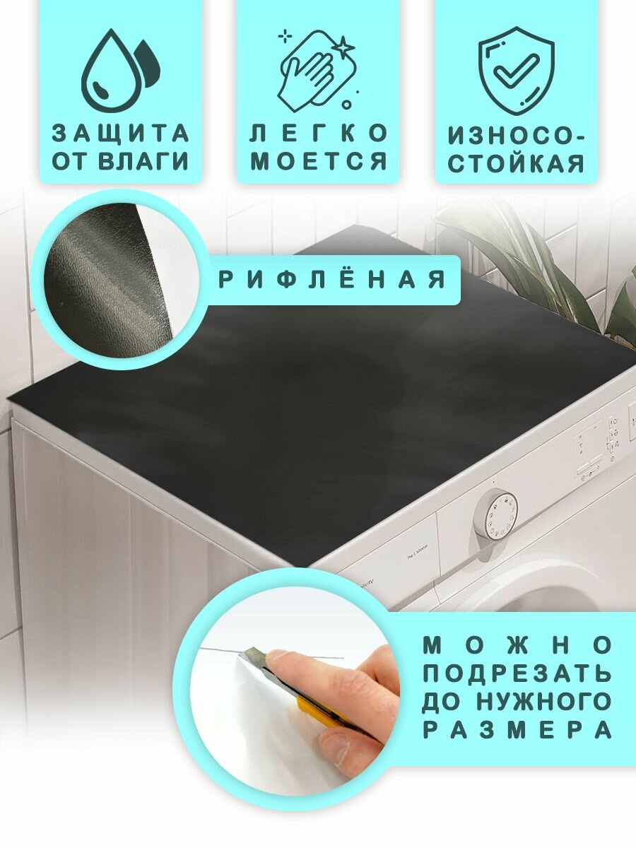 Коврик чёрный рифленый на стиральную машину. 1.5 мм. ПВХ. 60х55 см. информация: