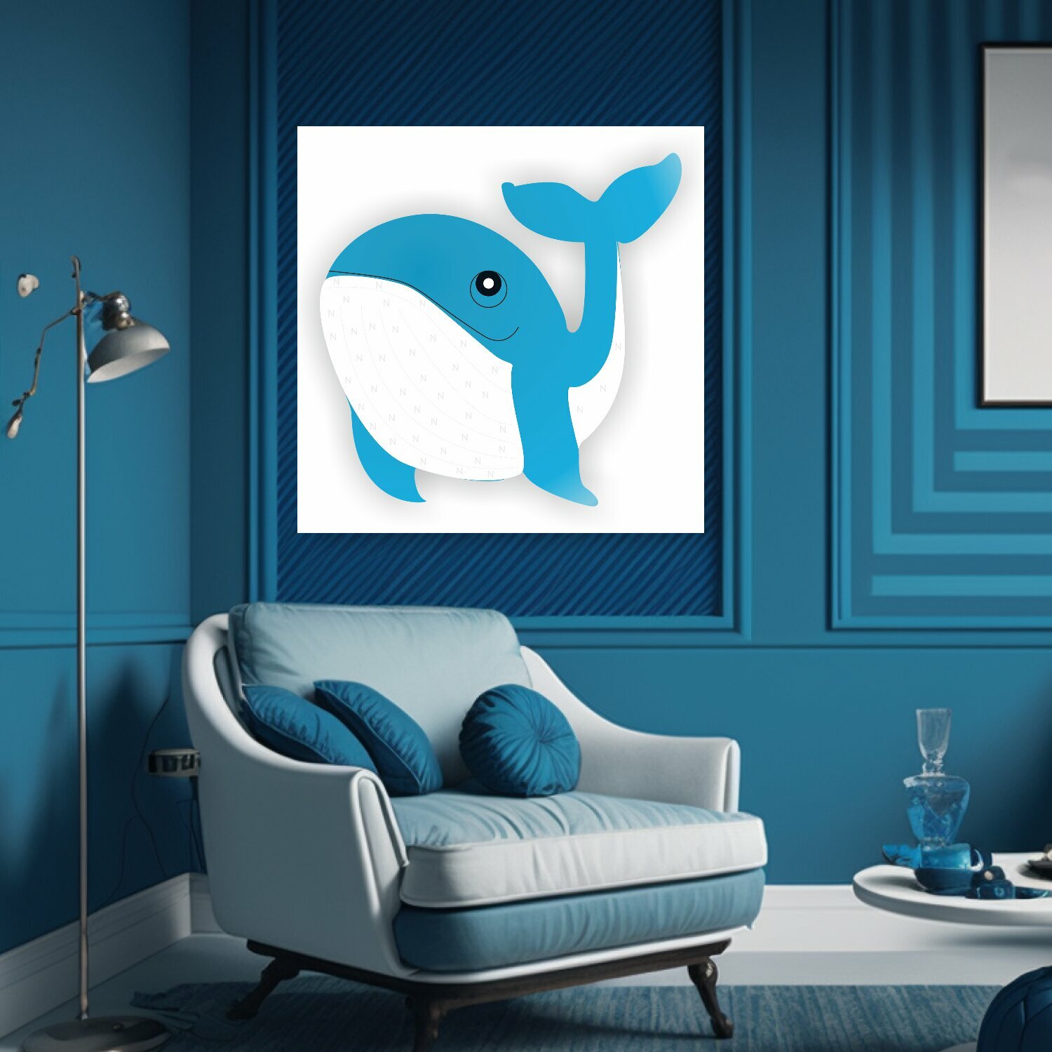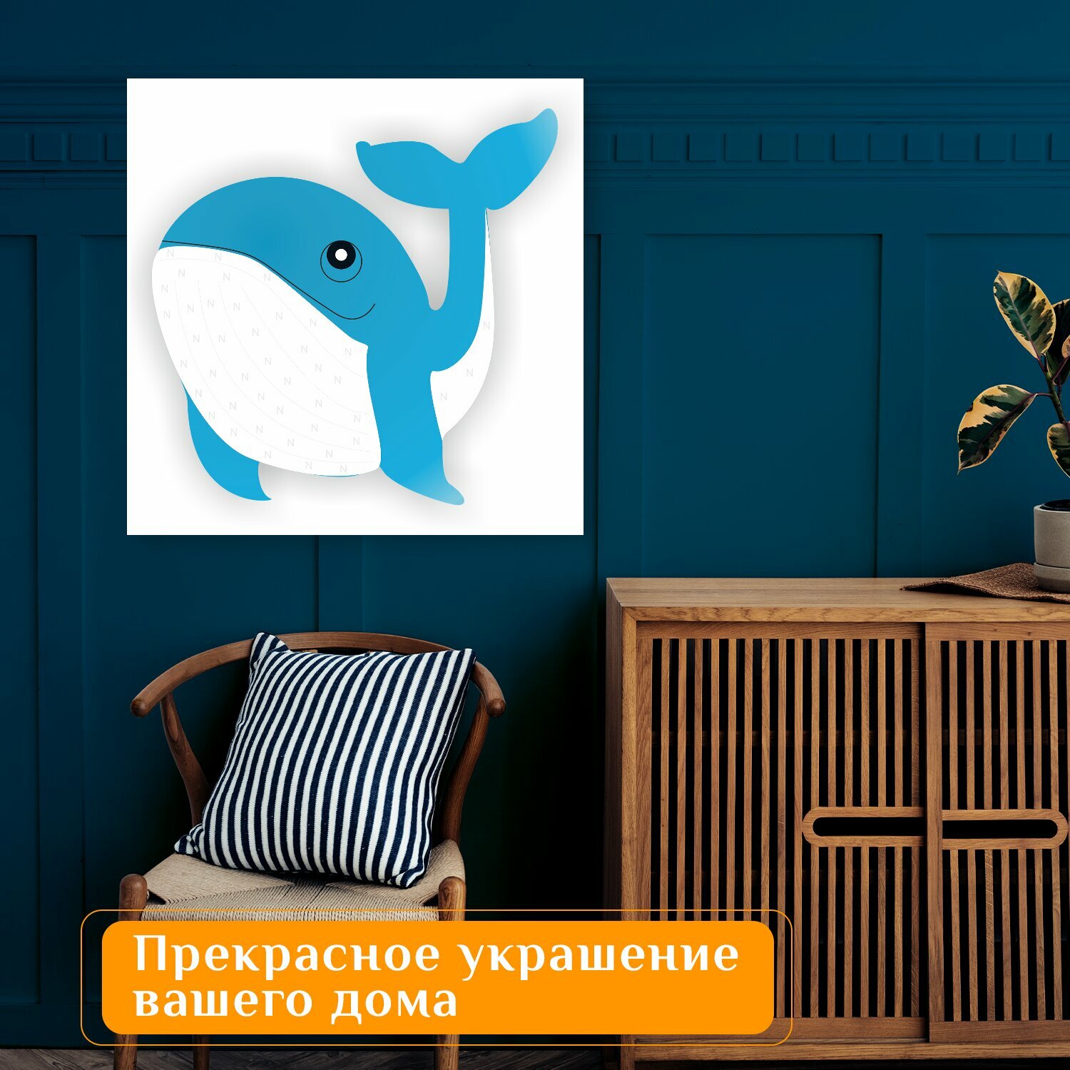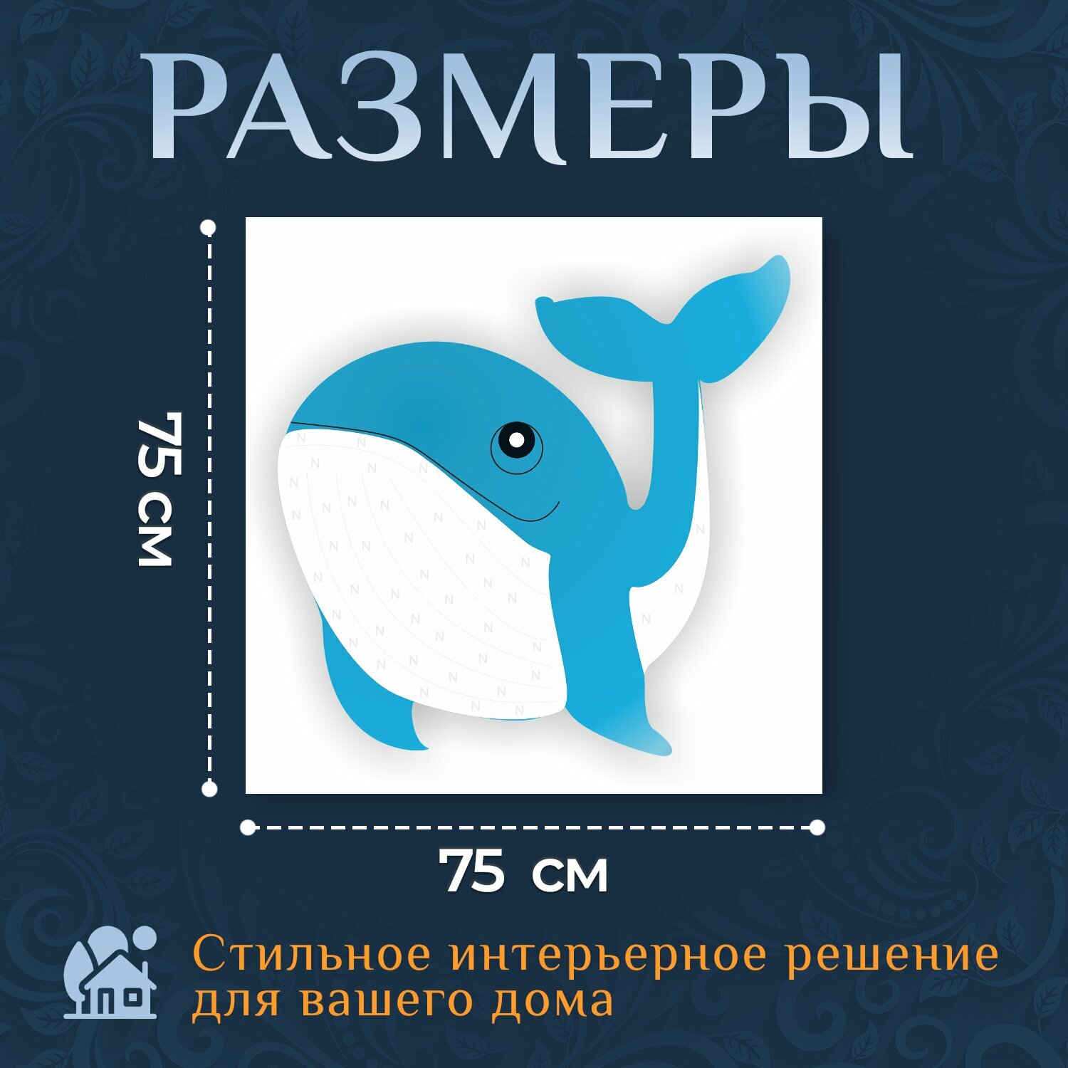 Картина на холсте "Кит, рыбы, смайлики" на подрамнике 75х75 см. для интерьера информация: