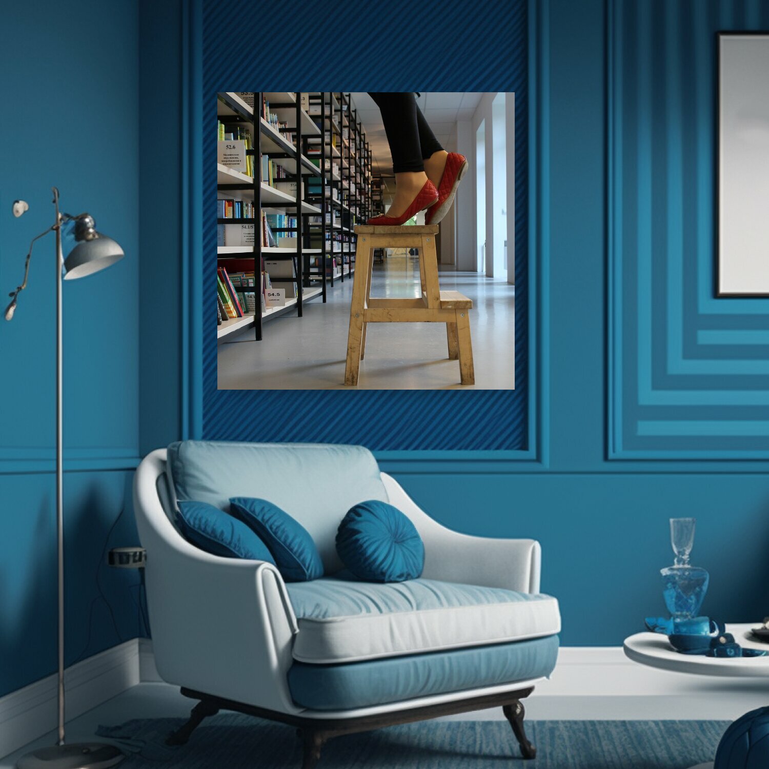 10 цен на Картина на холсте "Табурет, подставка, лестница" на подрамнике 75х75 см. для интерьера