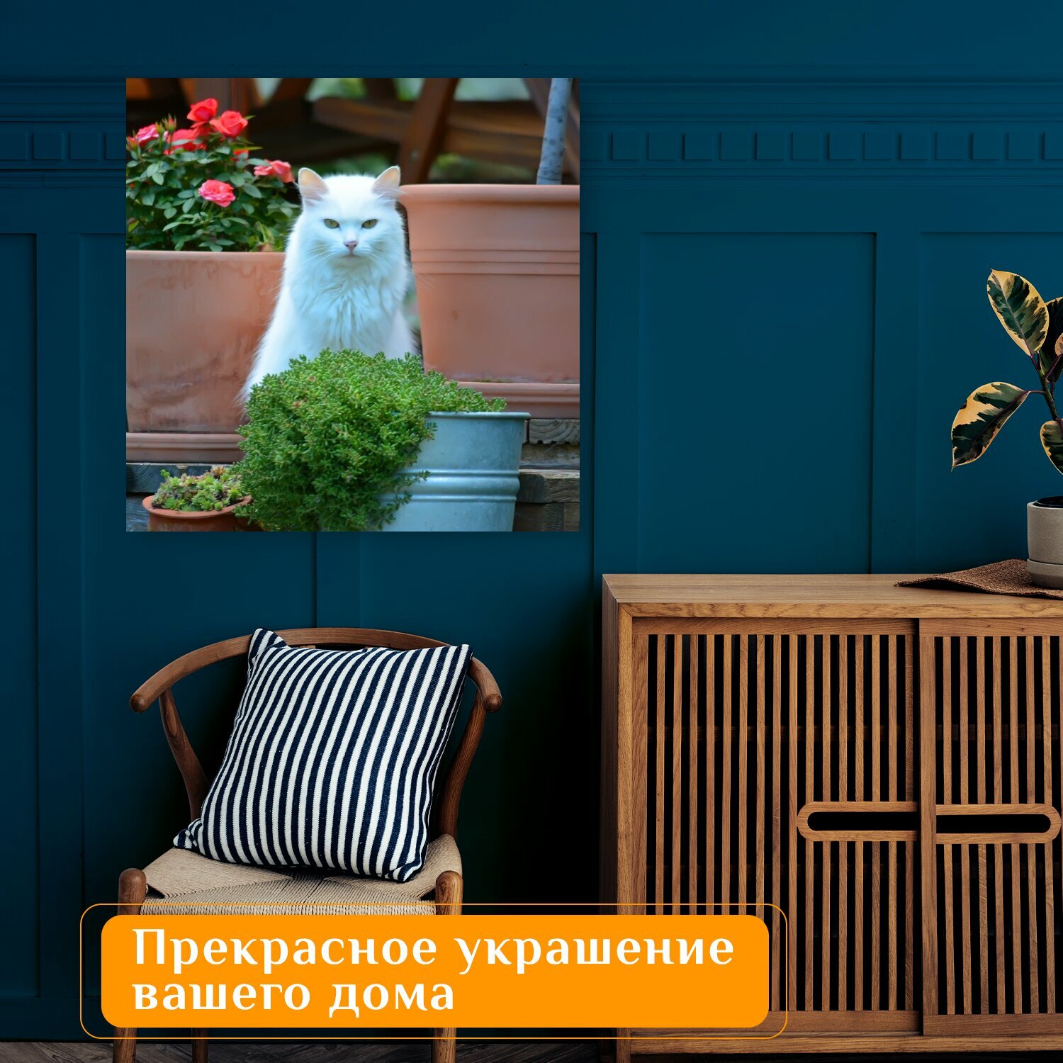 10 цен на Картина на холсте "Кошка, белый, цветы" на подрамнике 75х75 см. для интерьера