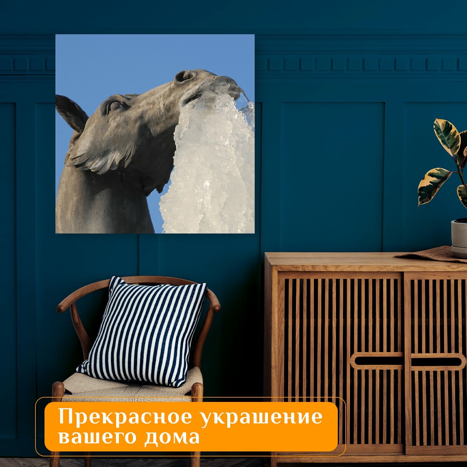 Картина на холсте "Лошадь, статуя, лед" на подрамнике 75х75 см. для интерьера информация: