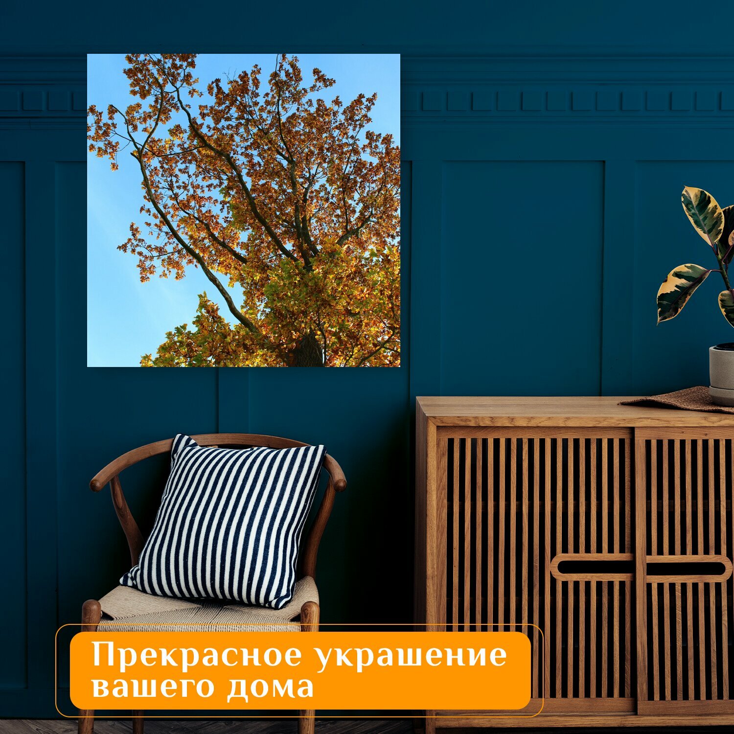 Отзывы на Картина на холсте "Дерево, листья, падение" на подрамнике 75х75 см. для интерьера