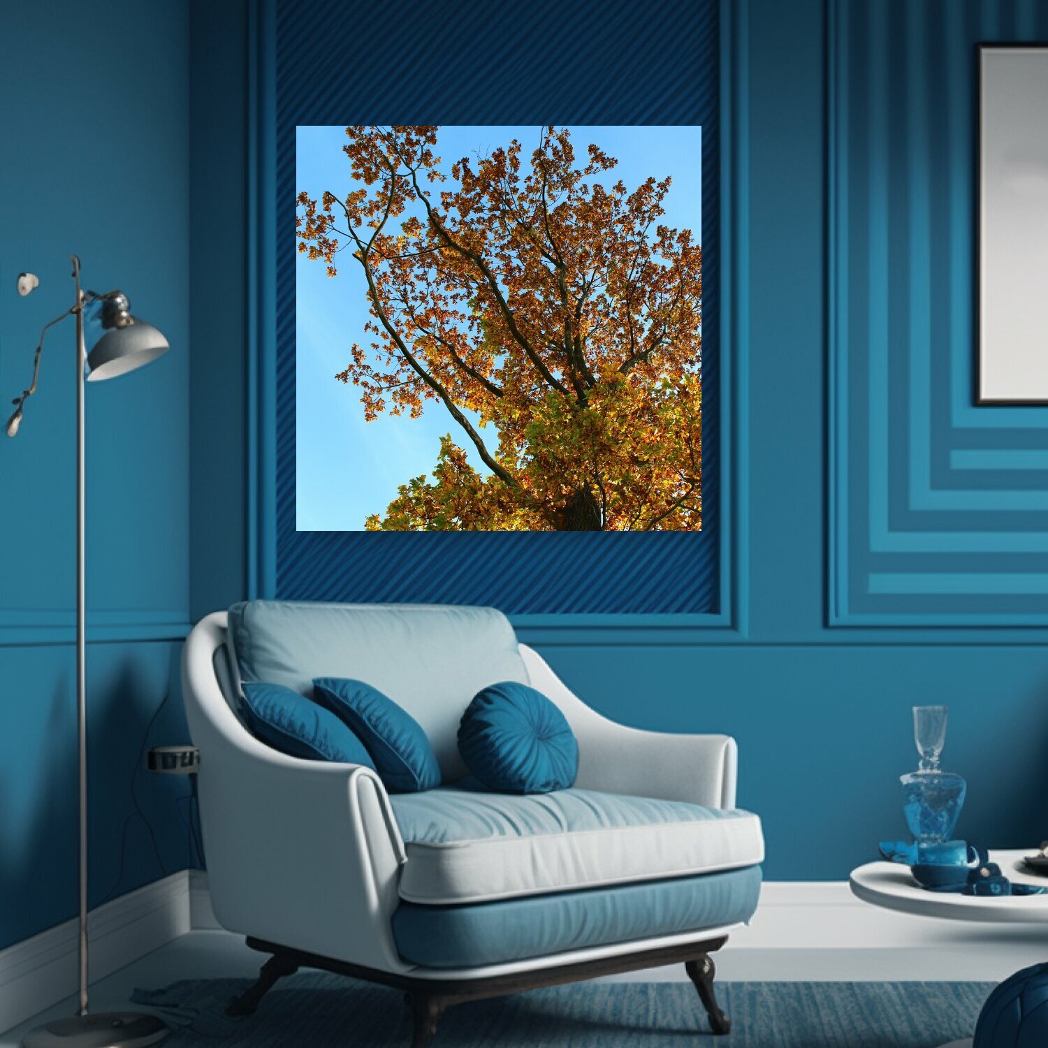 10 цен на Картина на холсте "Дерево, листья, падение" на подрамнике 75х75 см. для интерьера