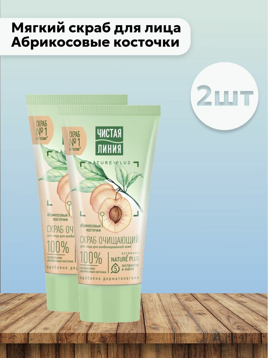 10 цен на Очищающий скраб для лица Чистая линия, абрикосовые косточки, 50 мл, 2 шт