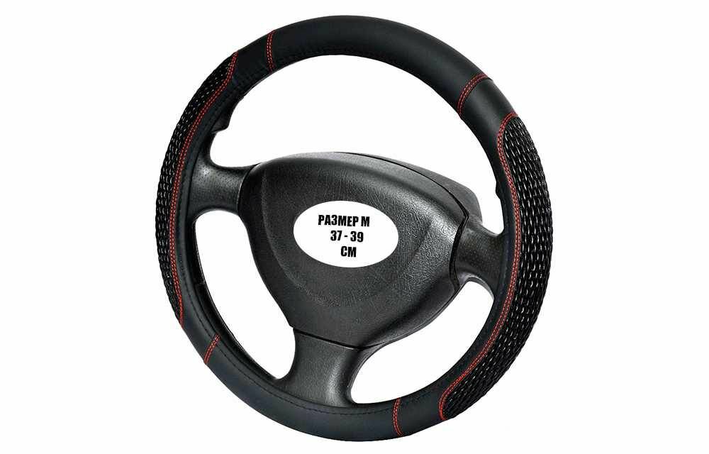 Отзывы на Оплетка (чехол) на руль Мерседес-Бенц СЛК-класс АМГ (2001 - 2004) родстер / Mercedes-Benz SLK-Class AMG, экокожа (премиального качества), Черный с красной строчкой