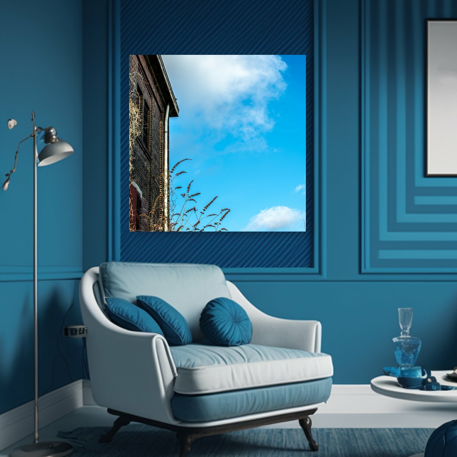10 цен на Картина на холсте "Дом, стена дома, небеса" на подрамнике 75х75 см. для интерьера