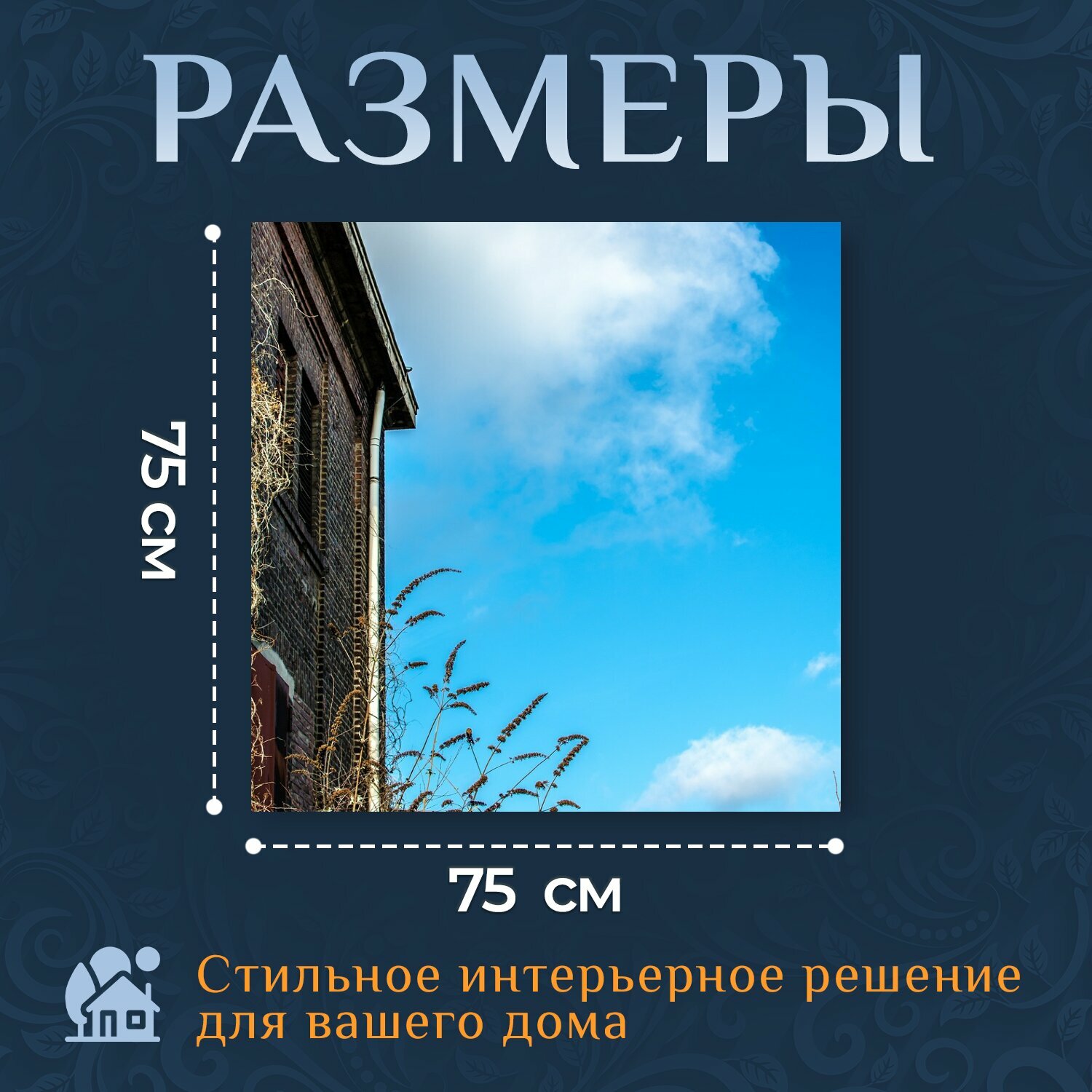 Картина на холсте "Дом, стена дома, небеса" на подрамнике 75х75 см. для интерьера информация: