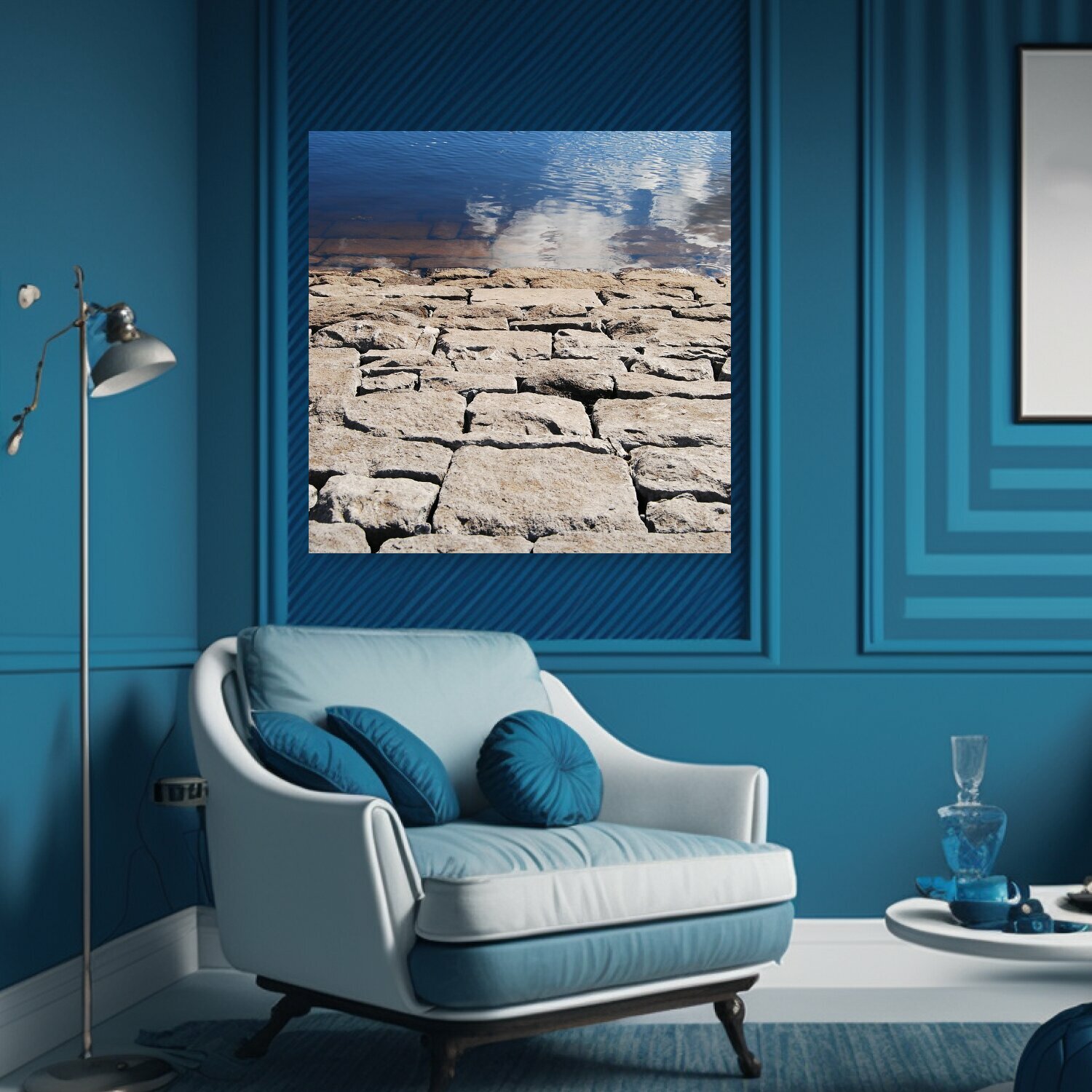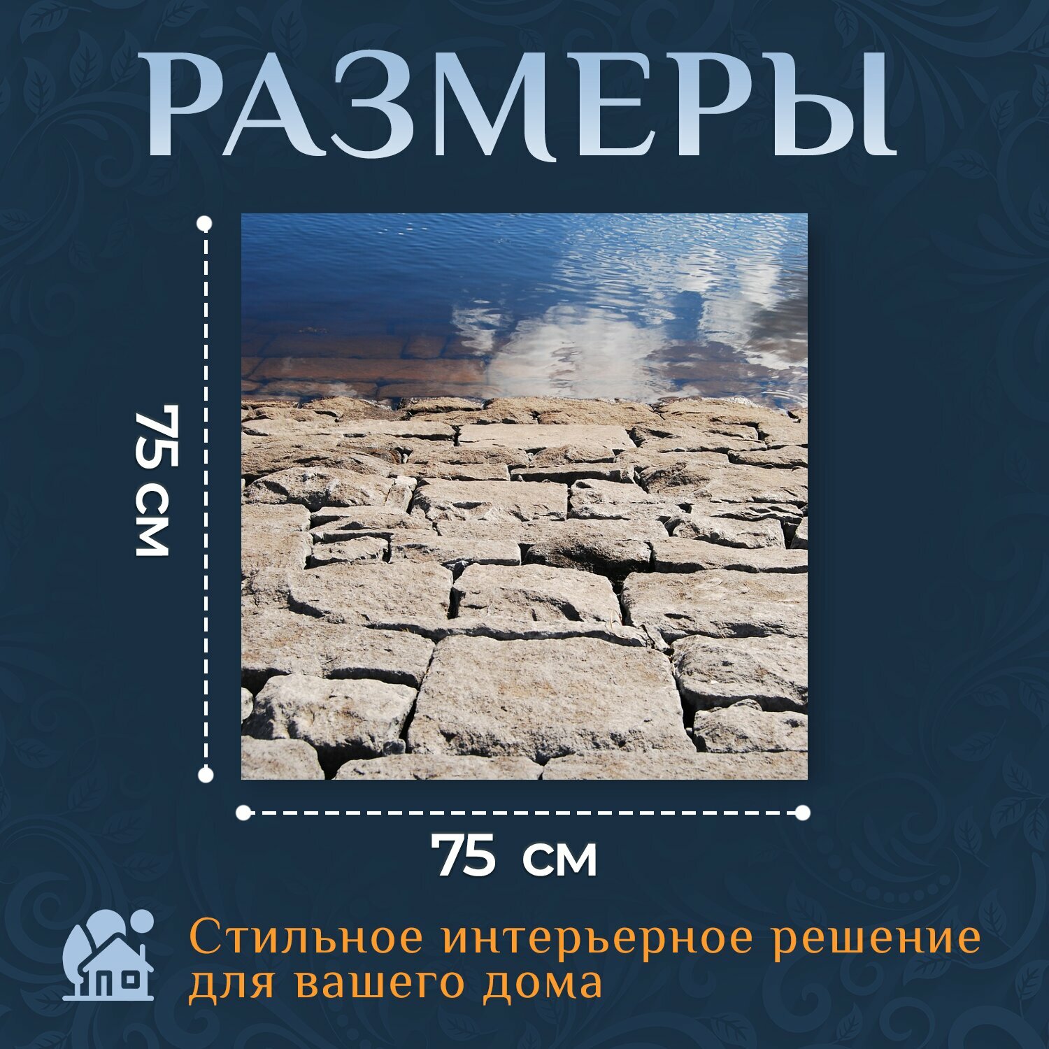 10 цен на Картина на холсте "Вода, отражение, камень" на подрамнике 75х75 см. для интерьера
