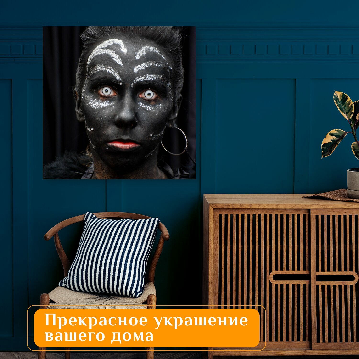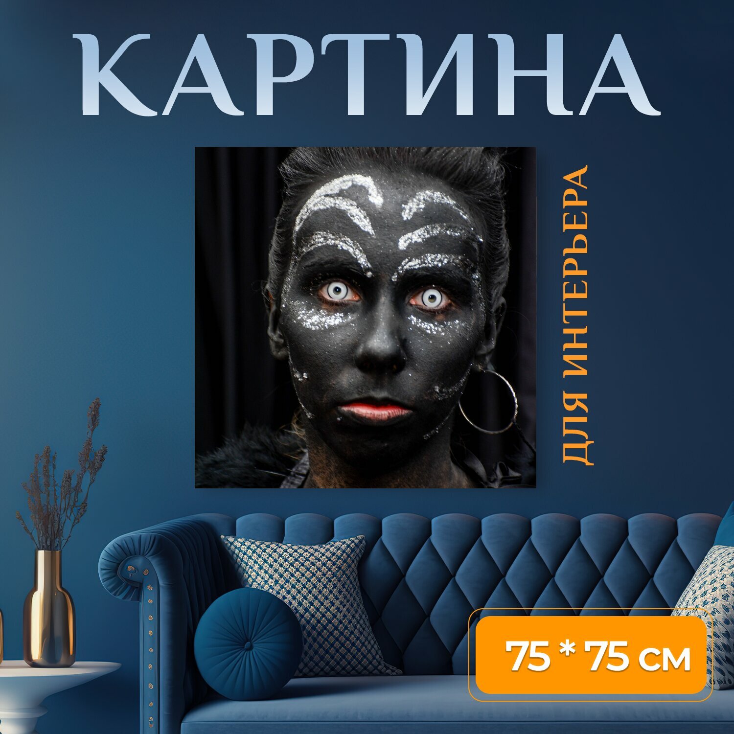 10 цен на Картина на холсте "Женщина, лицо, воин" на подрамнике 75х75 см. для интерьера