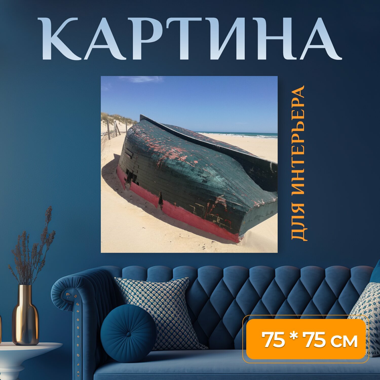 10 цен на Картина на холсте "Лодки, эмиграция, марокко" на подрамнике 75х75 см. для интерьера