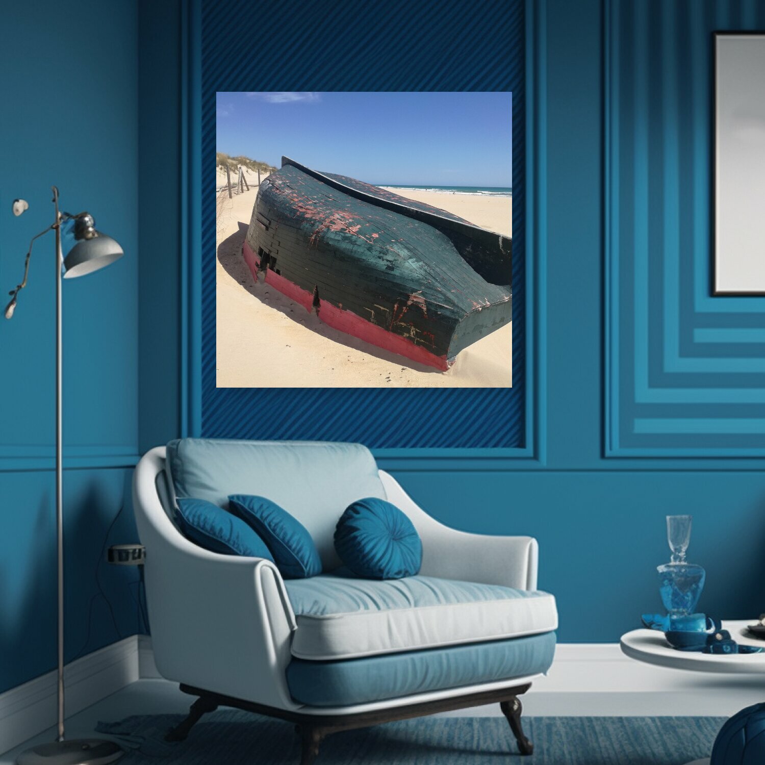 Картина на холсте "Лодки, эмиграция, марокко" на подрамнике 75х75 см. для интерьера информация: