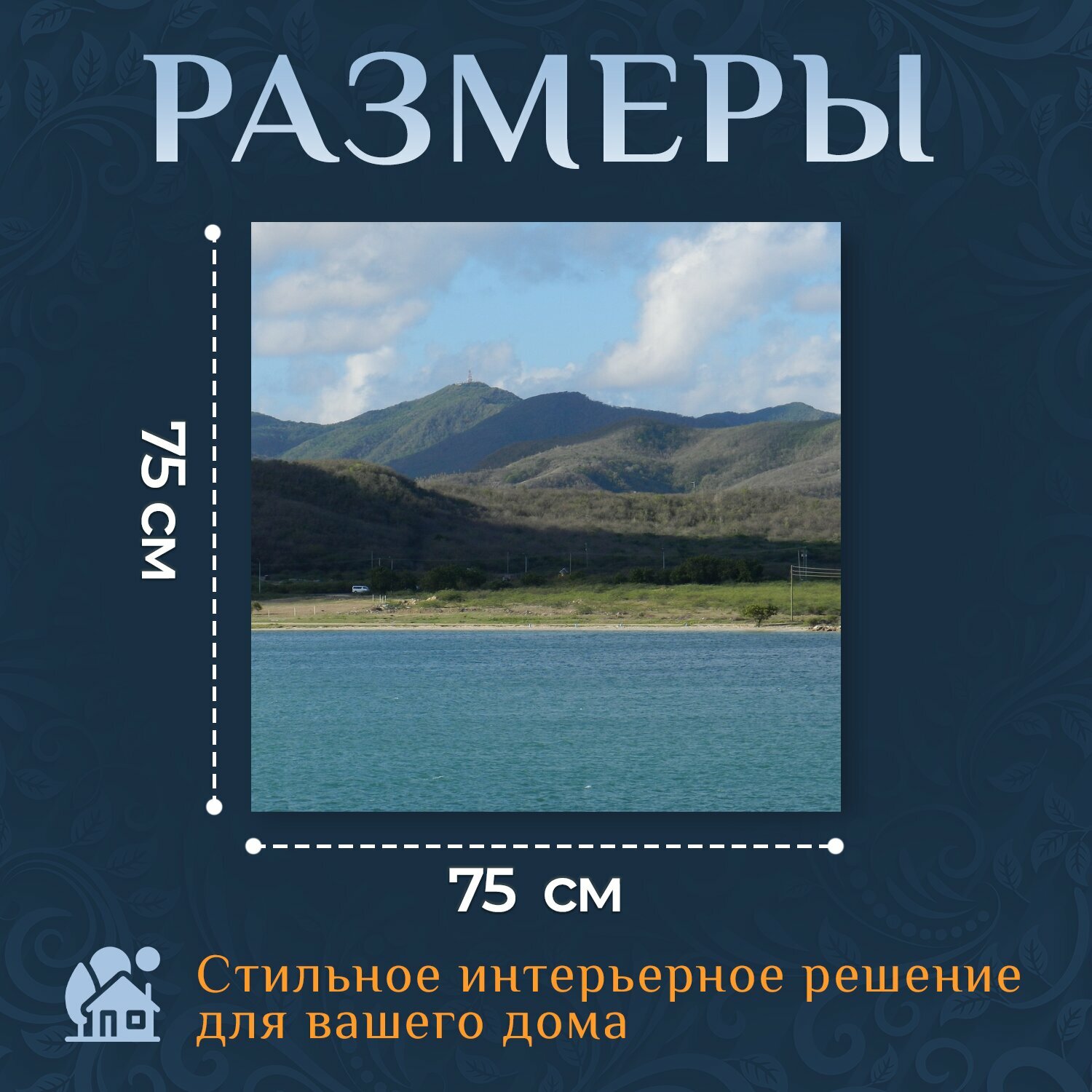 Картина на холсте "Гора, вода, океан" на подрамнике 75х75 см. для интерьера информация: