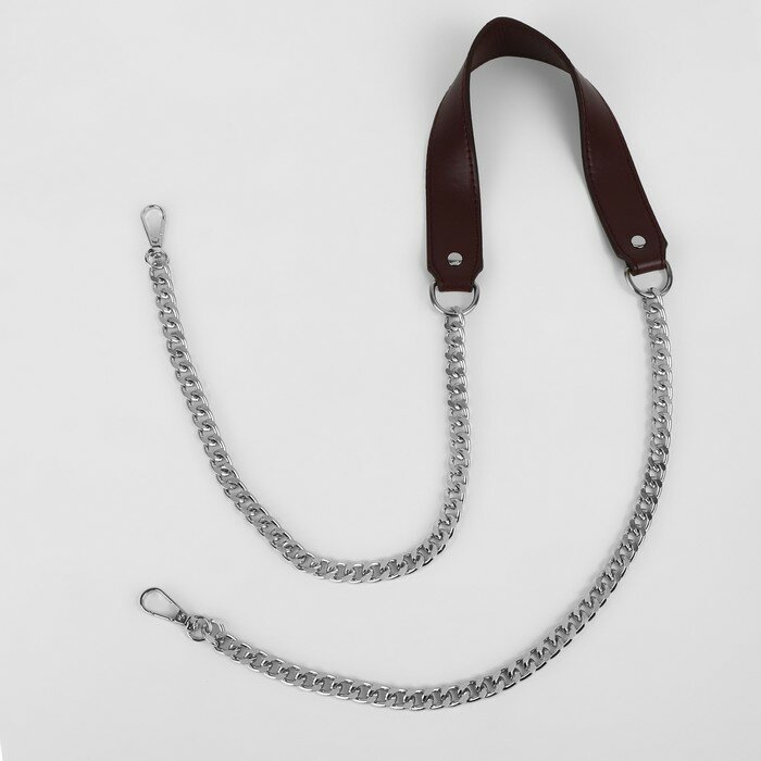 Арт Узор Ручка для сумки, с плоскими цепочками и карабинами, 120 × 3 см, цвет коричневый/серебряный информация: