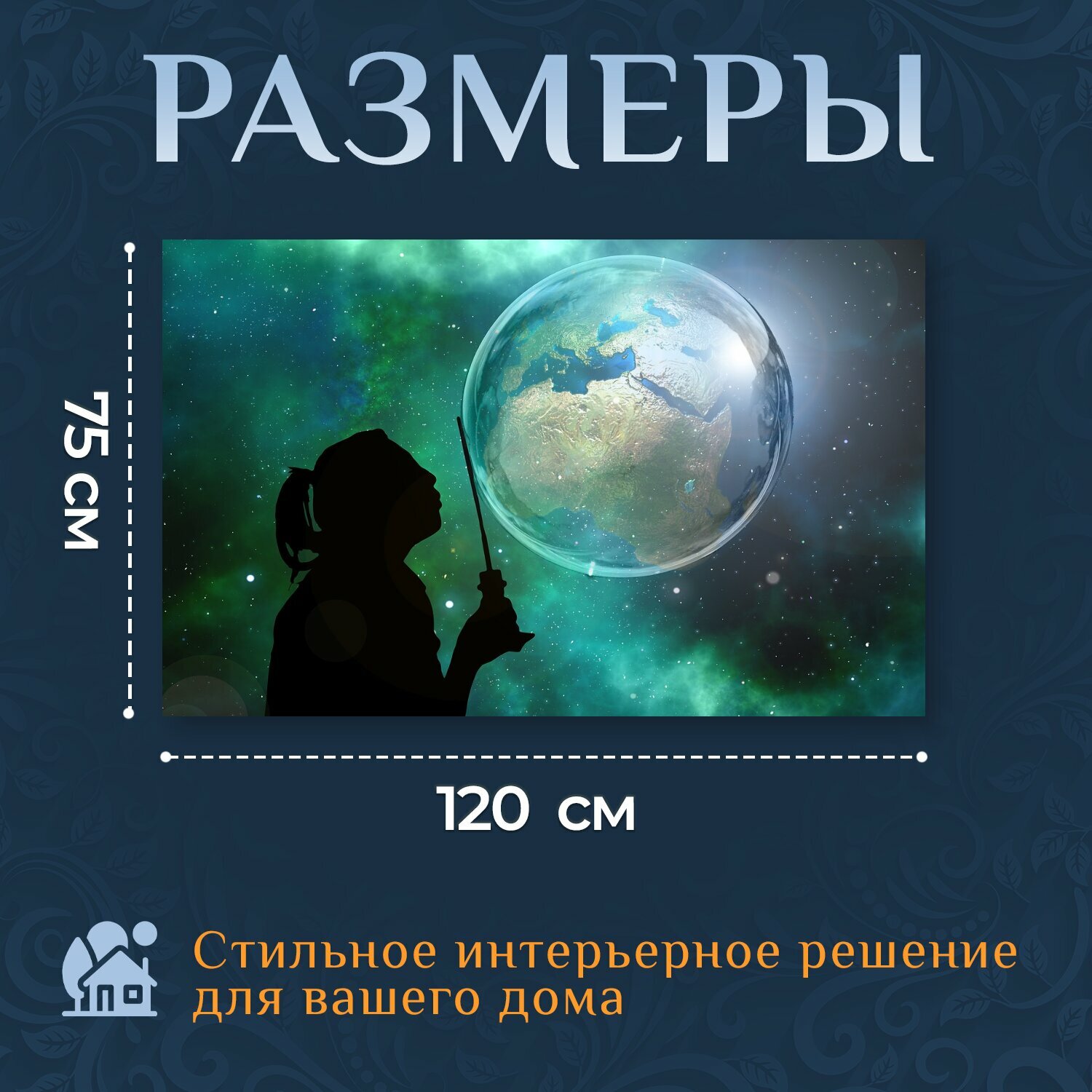 Картина на холсте "Мыльный пузырь, глобус, земля" на подрамнике 120х75 см. для интерьера информация: