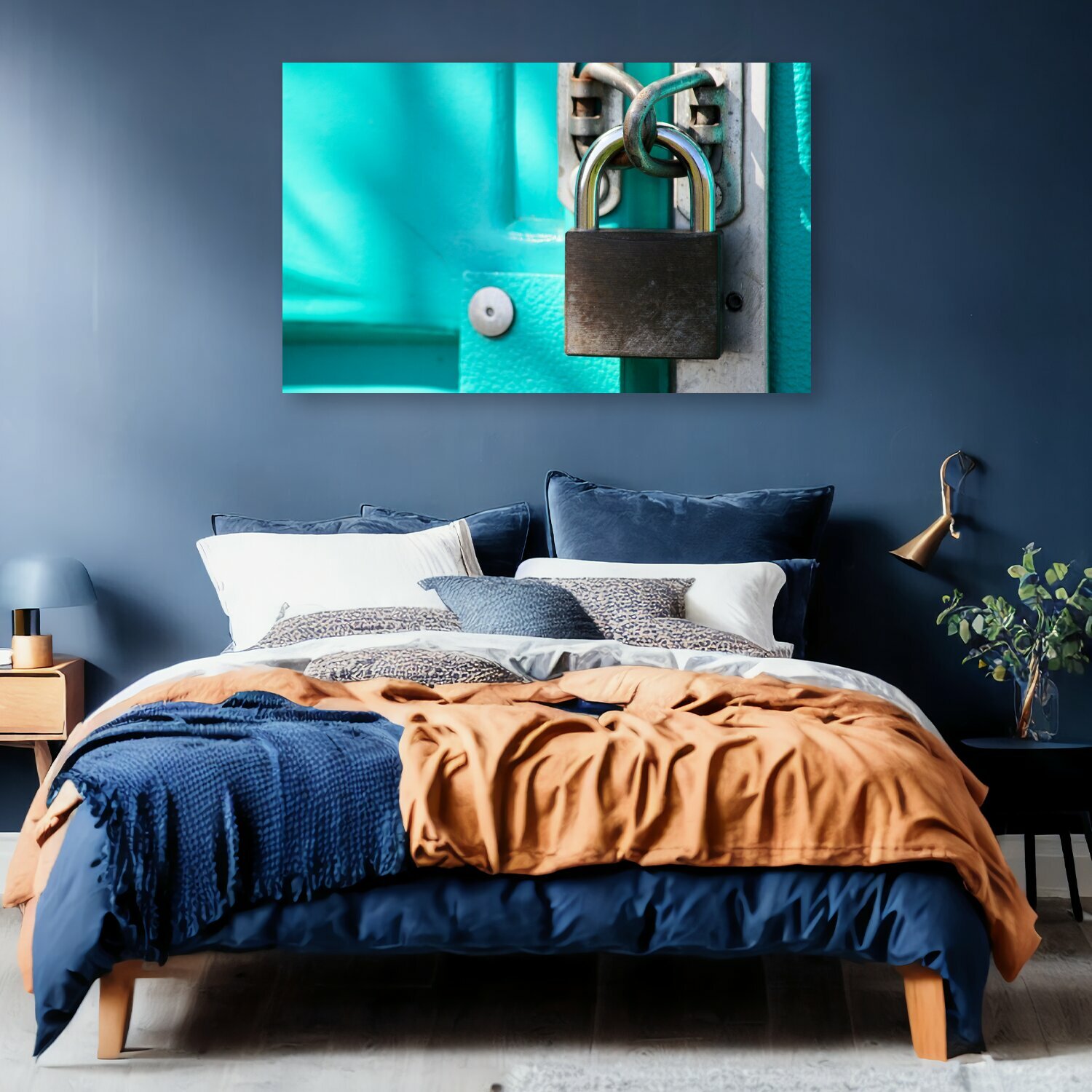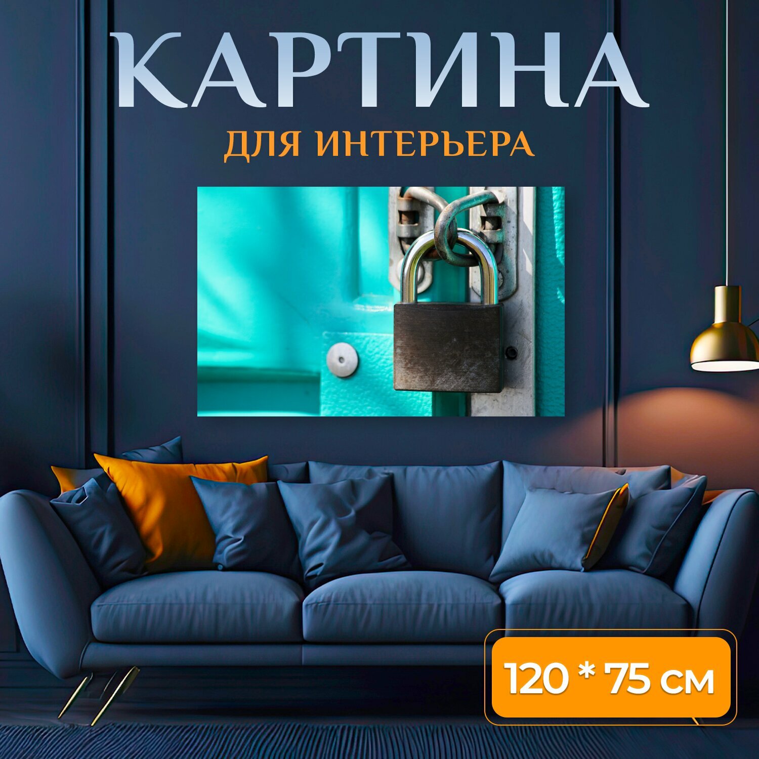 10 цен на Картина на холсте "Дверной замок, замок, металл" на подрамнике 120х75 см. для интерьера