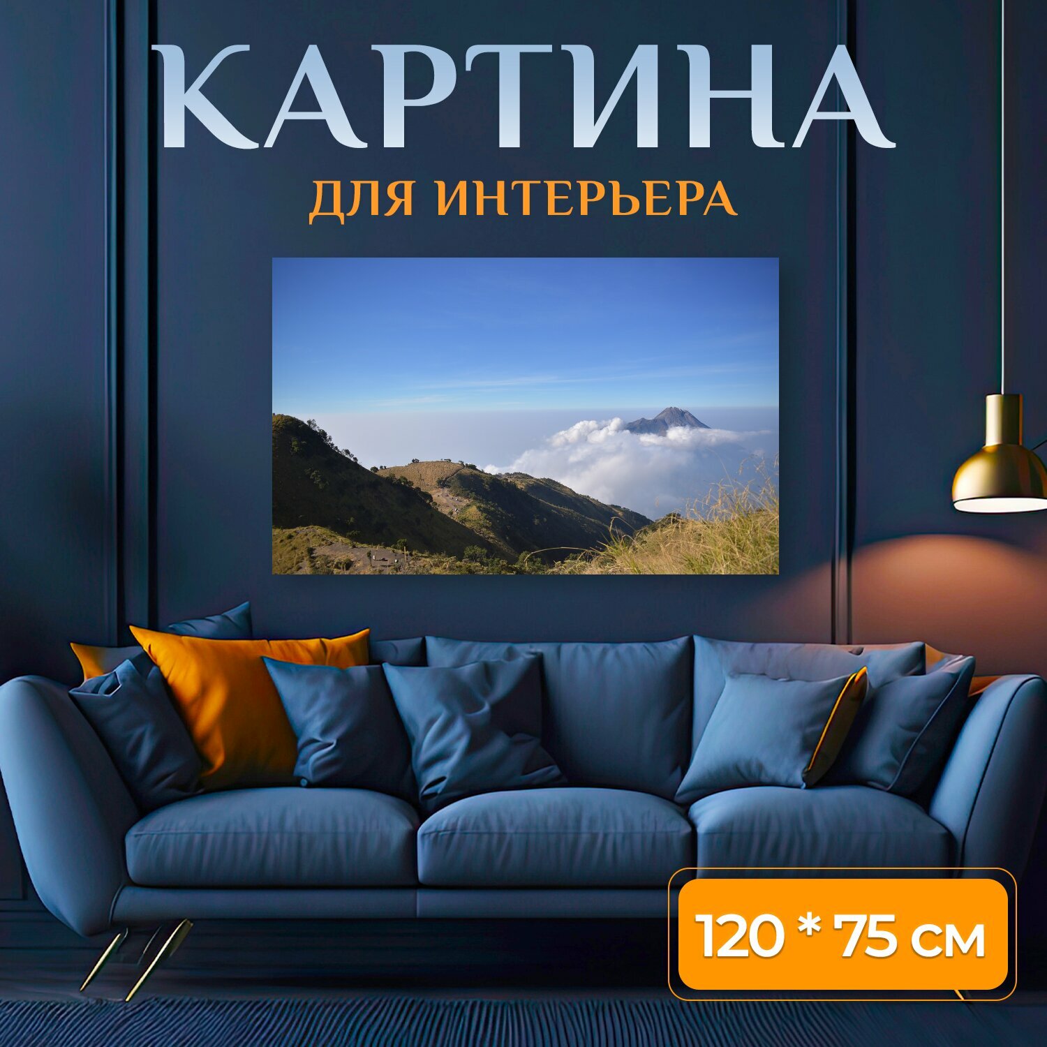 Картина на холсте "Гора, мерапи, индонезия" на подрамнике 120х75 см. для интерьера информация: