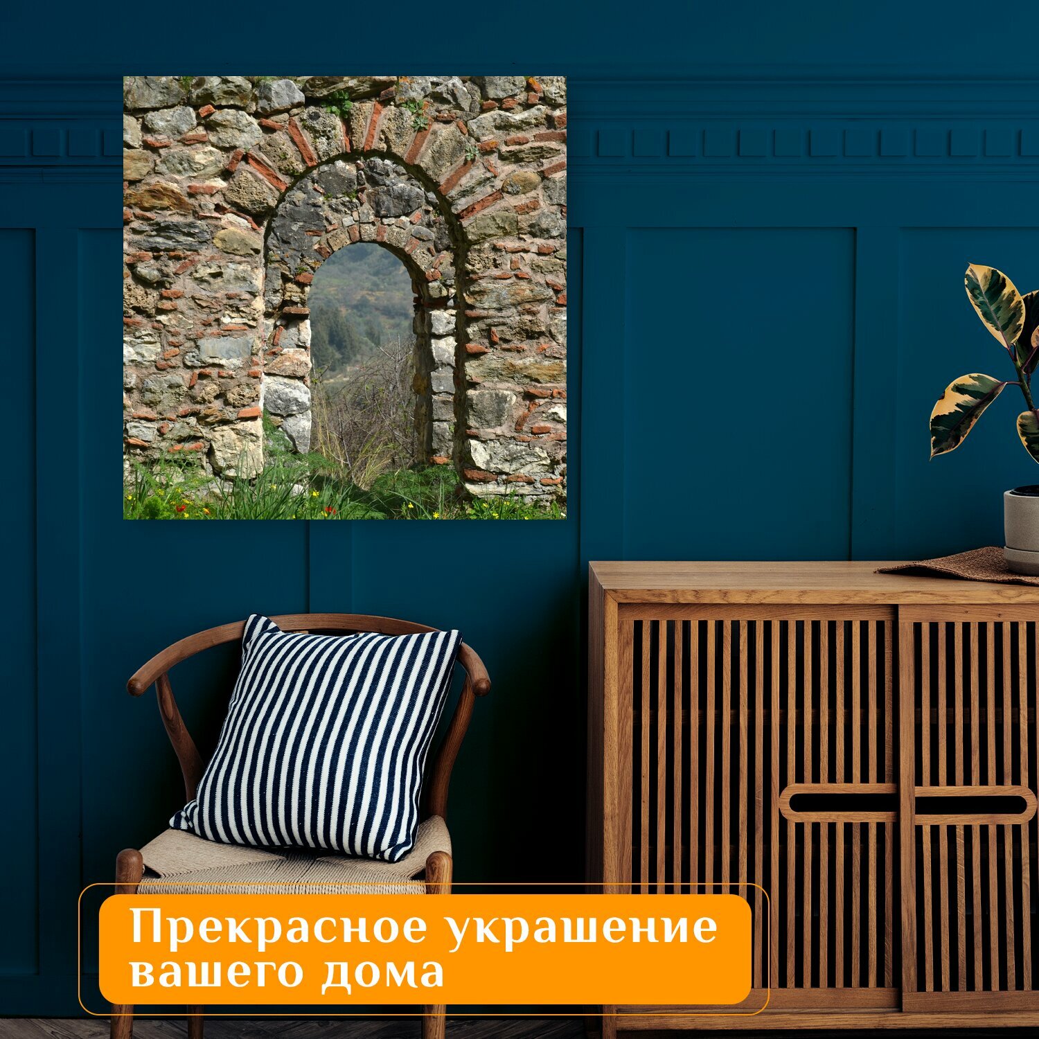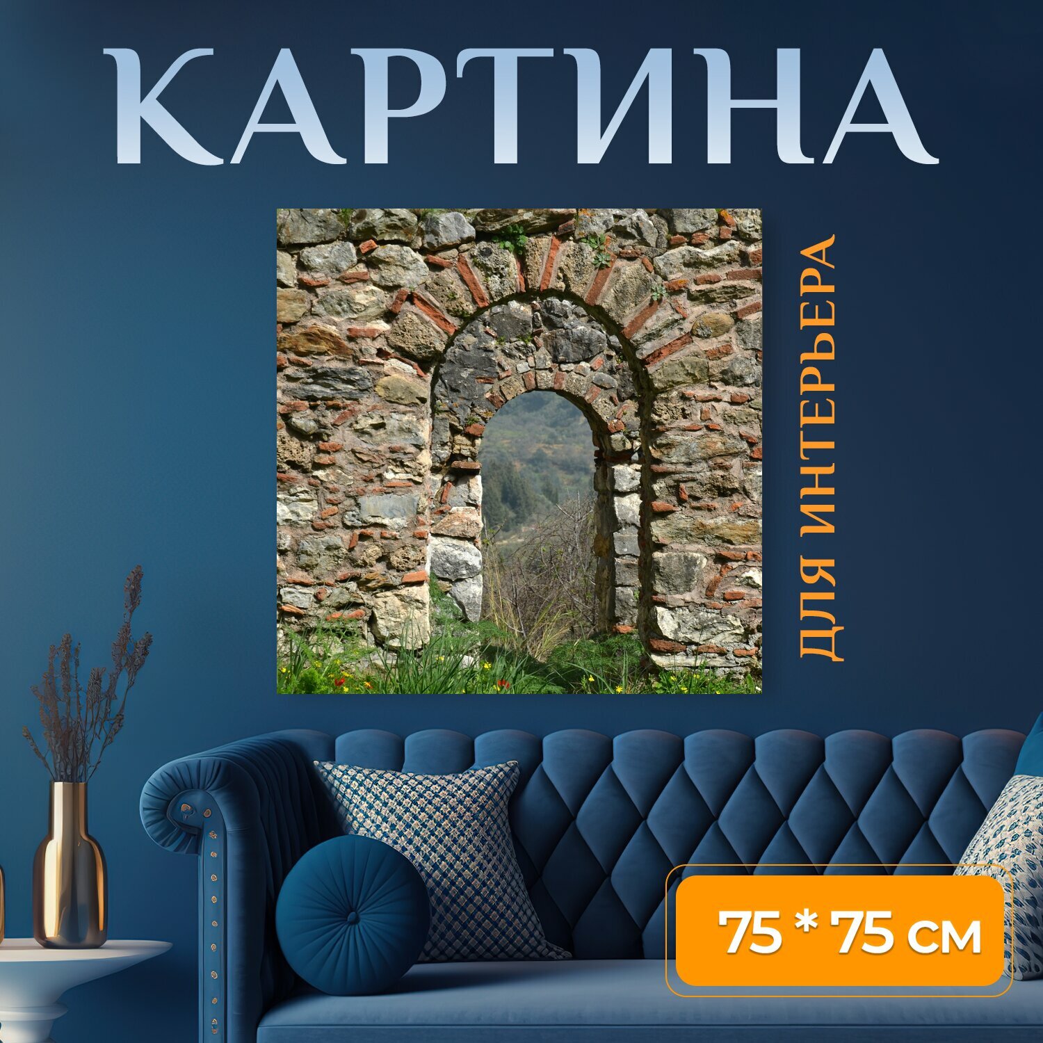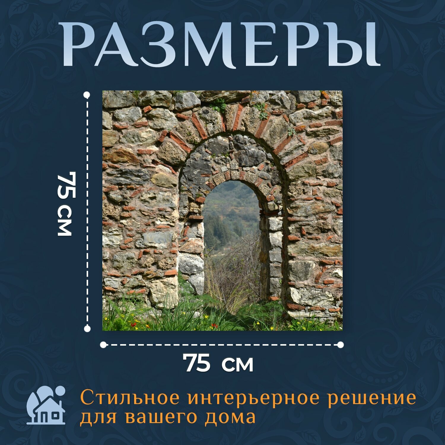 10 цен на Картина на холсте "Ворота, камень, старый" на подрамнике 75х75 см. для интерьера