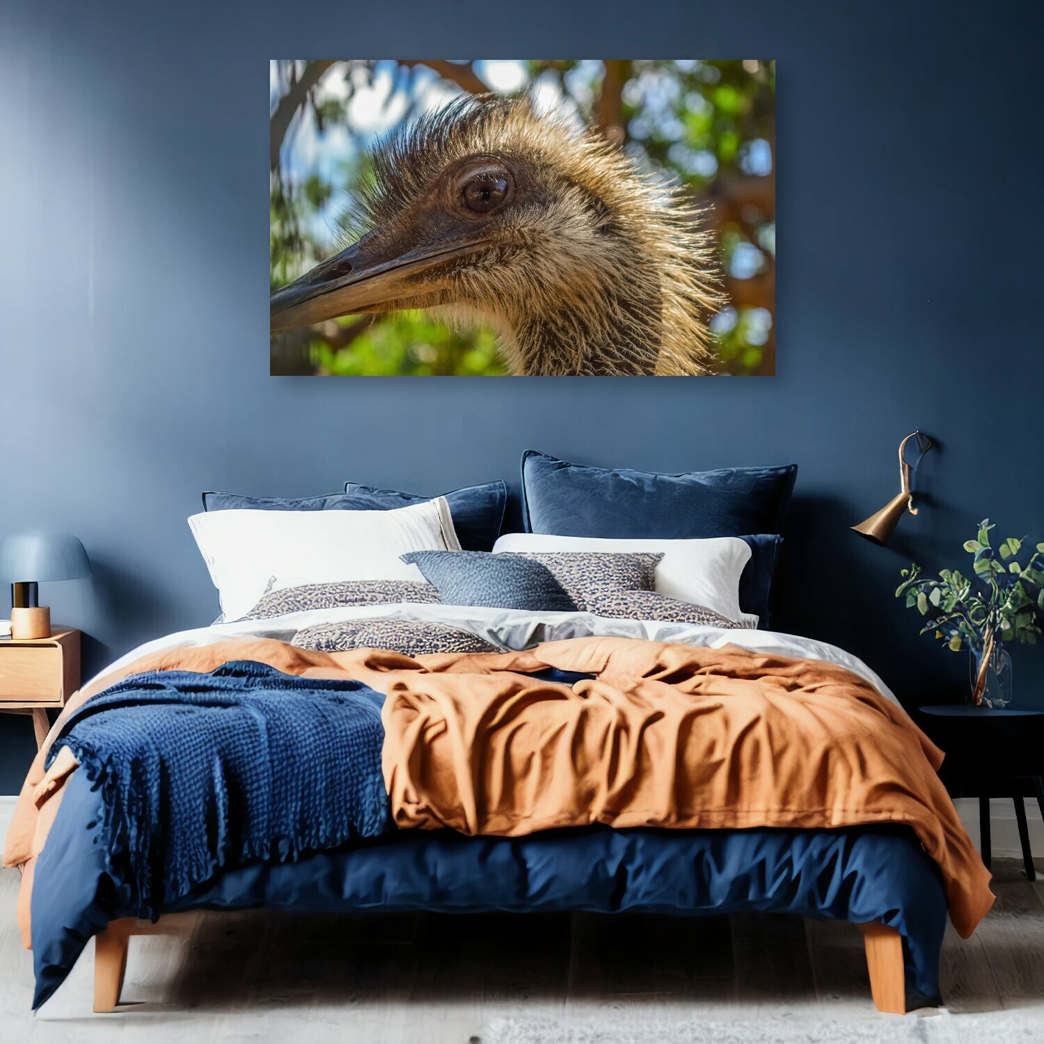 10 цен на Картина на холсте "Страус, птица, глаз" на подрамнике 120х75 см. для интерьера
