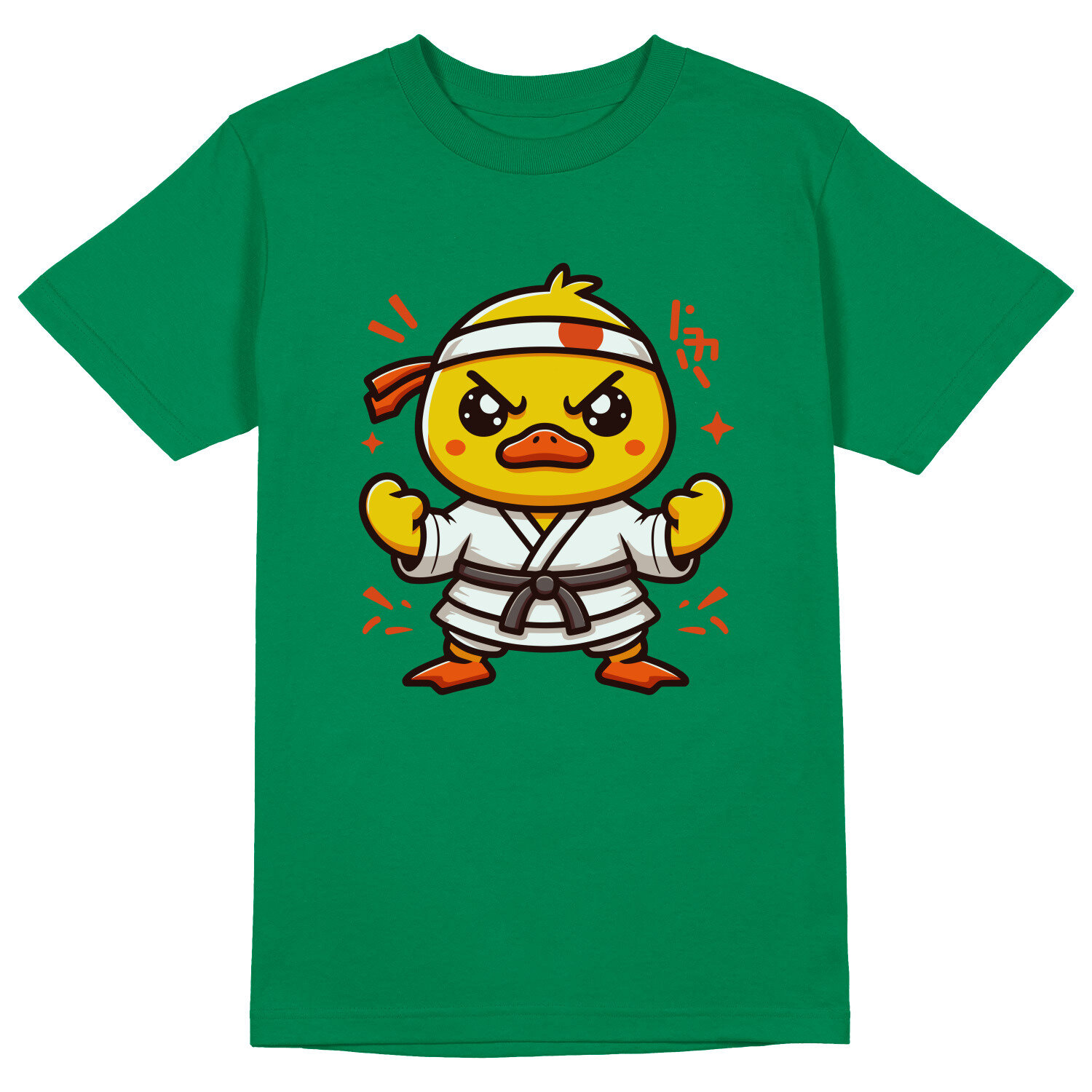 Мужская футболка «Желтая утка в кимоно для карате, самбо, дзюдо.» (S, зеленый) информация: