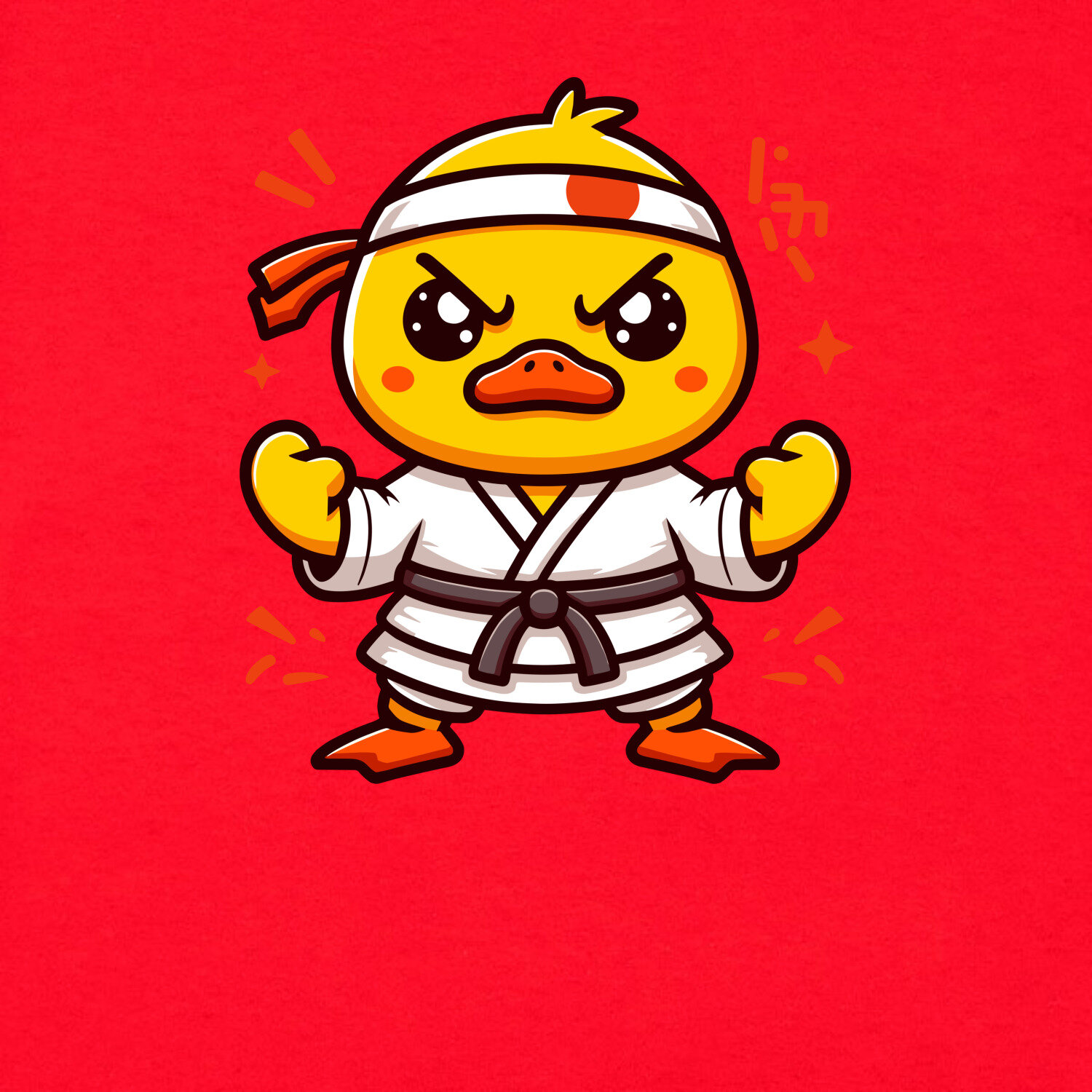 Мужская футболка «Желтая утка в кимоно для карате, самбо, дзюдо.» (S, красный) информация: