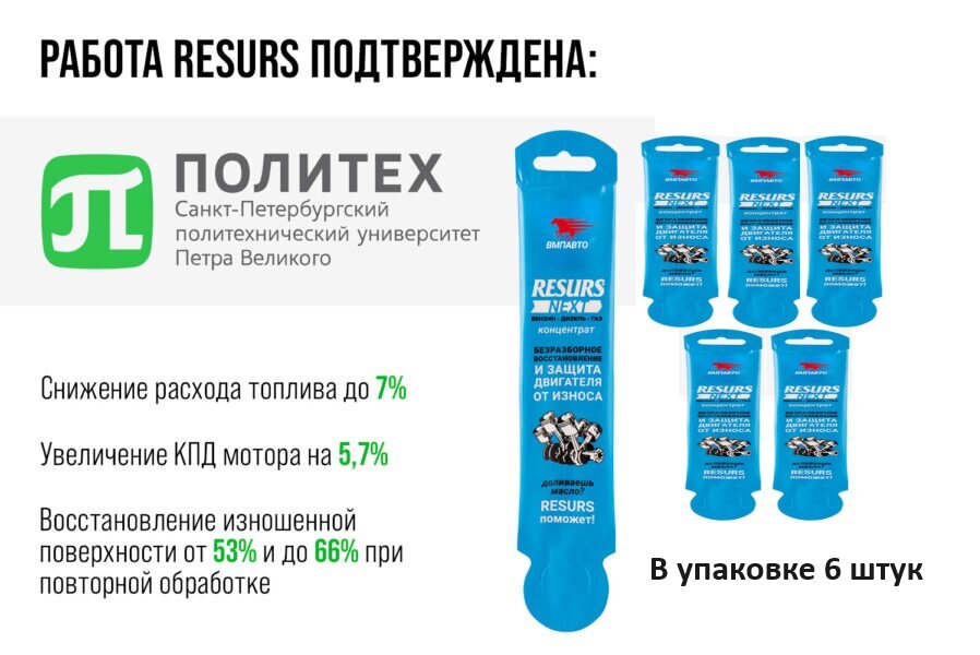 Отзывы на Присадка в моторное масло Реметаллизант Resurs Next для двигателя, ВМПАВТО, концентрат, 6 штук по 17 гр.