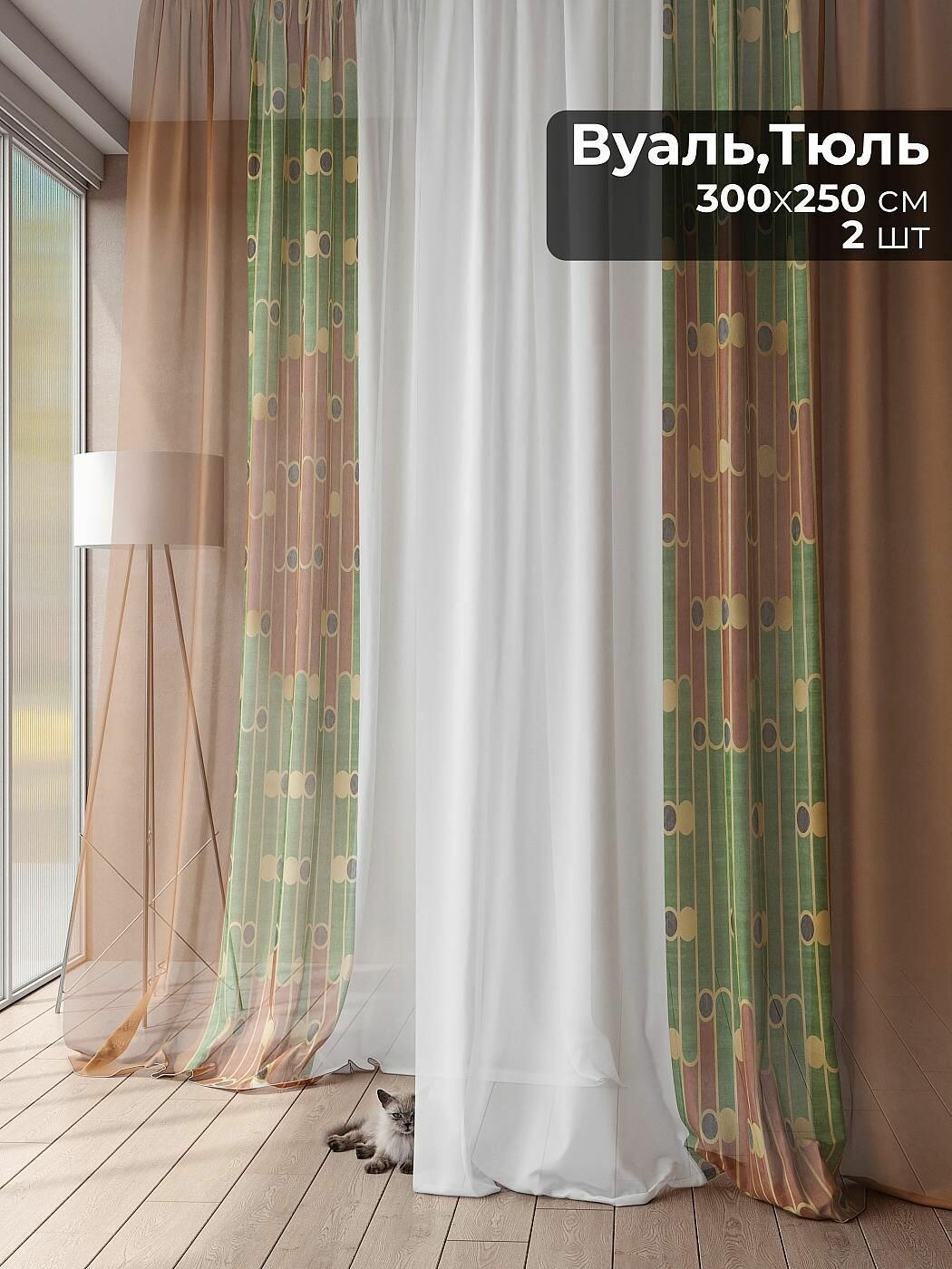 Комплекты штор AT HOME Гланбир высота 250 см, ширина 300 см, крепление - шторная лента, Белый информация: