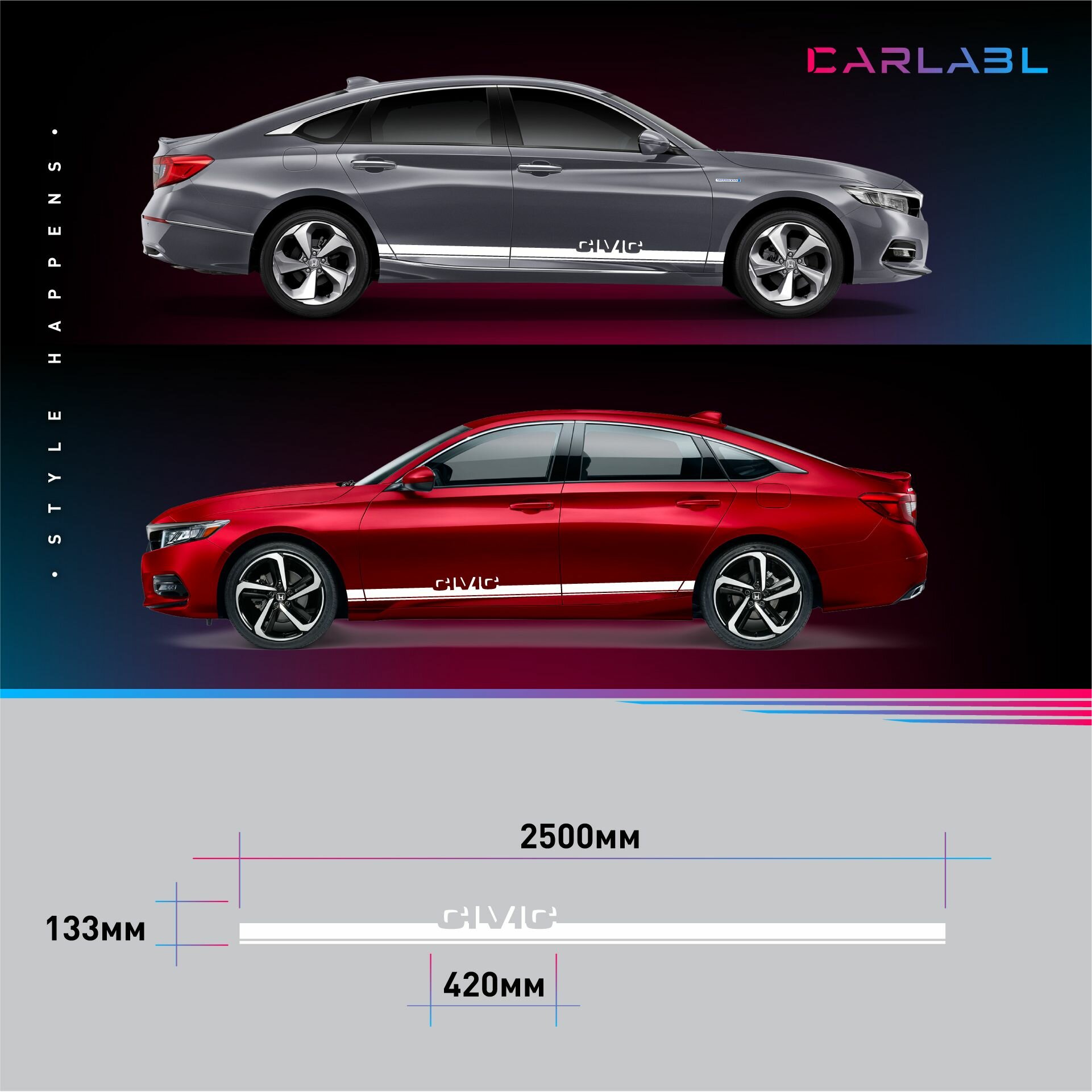 10 цен на Наклейки на автомобиль Honda Civic - белые наклейки на авто Хонда Цивик на ДВА борта