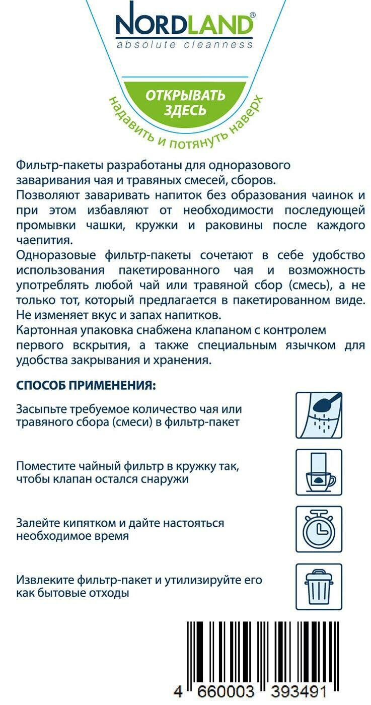 Nordland / Фильтр-пакеты Nordland для заваривания чая 100шт 1 шт информация: