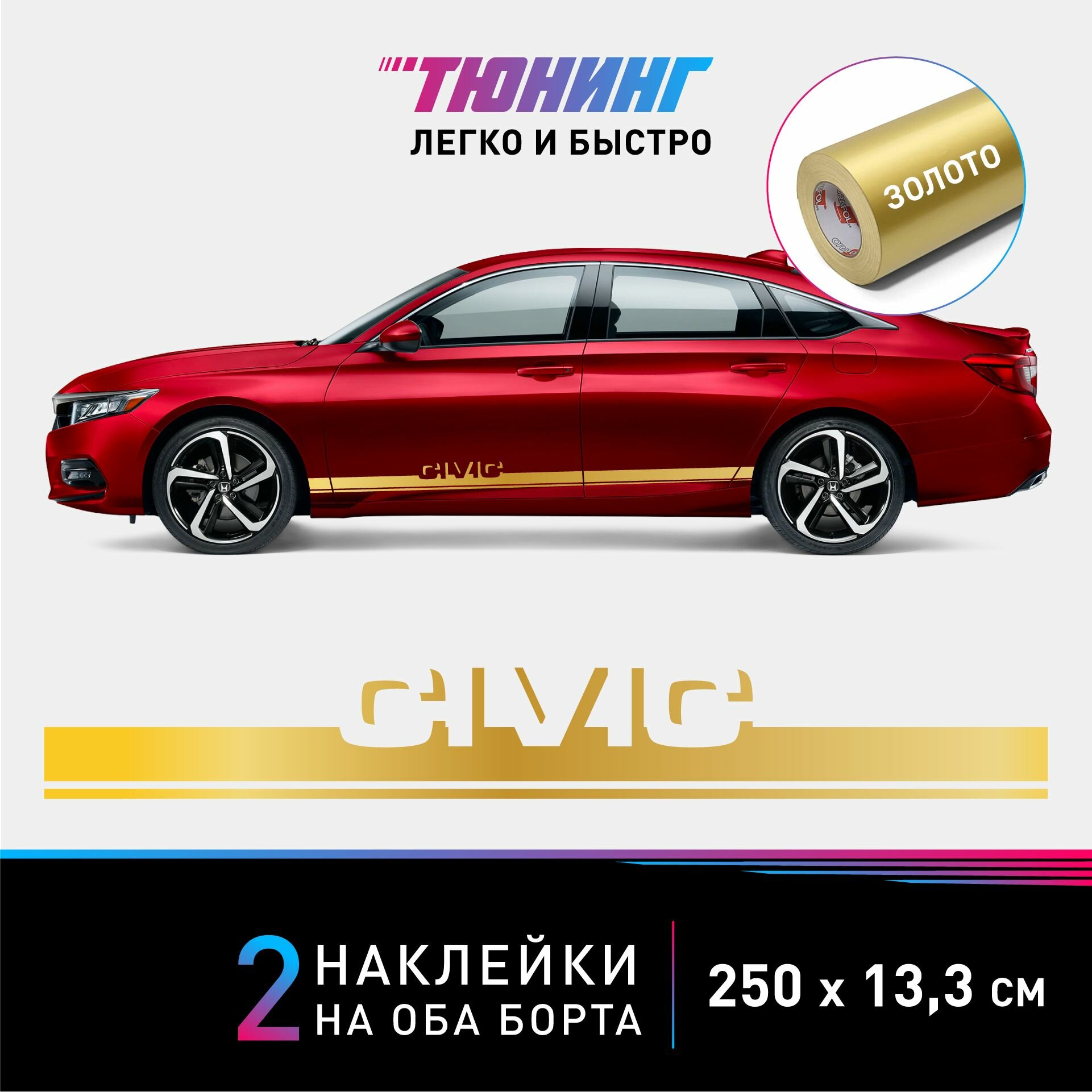 10 цен на Наклейки на автомобиль Honda Civic - золотые наклейки на авто Хонда Цивик на ДВА борта