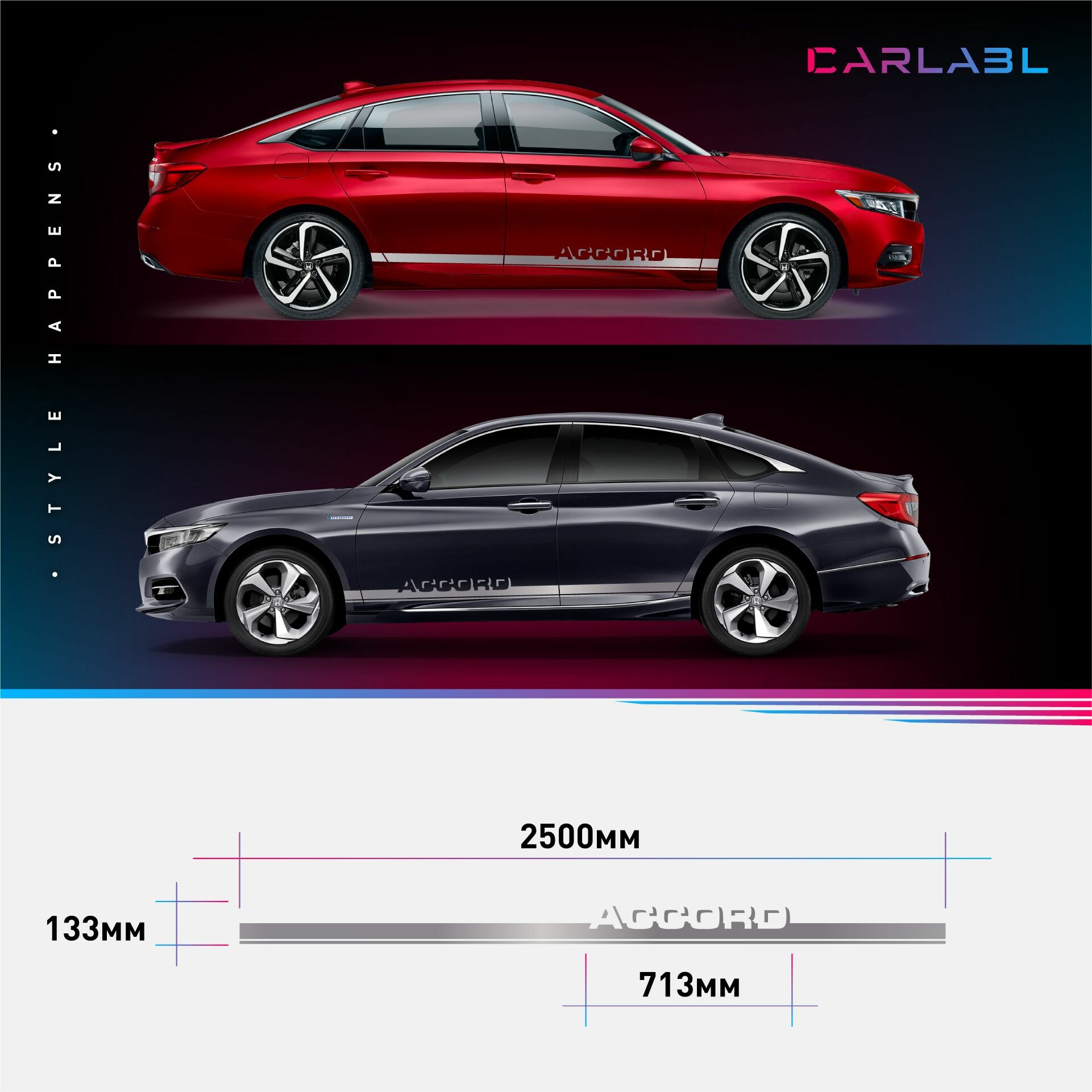 Отзывы на Наклейки на автомобиль Honda Accord - серебряные наклейки на авто Хонда Аккорд на ДВА борта
