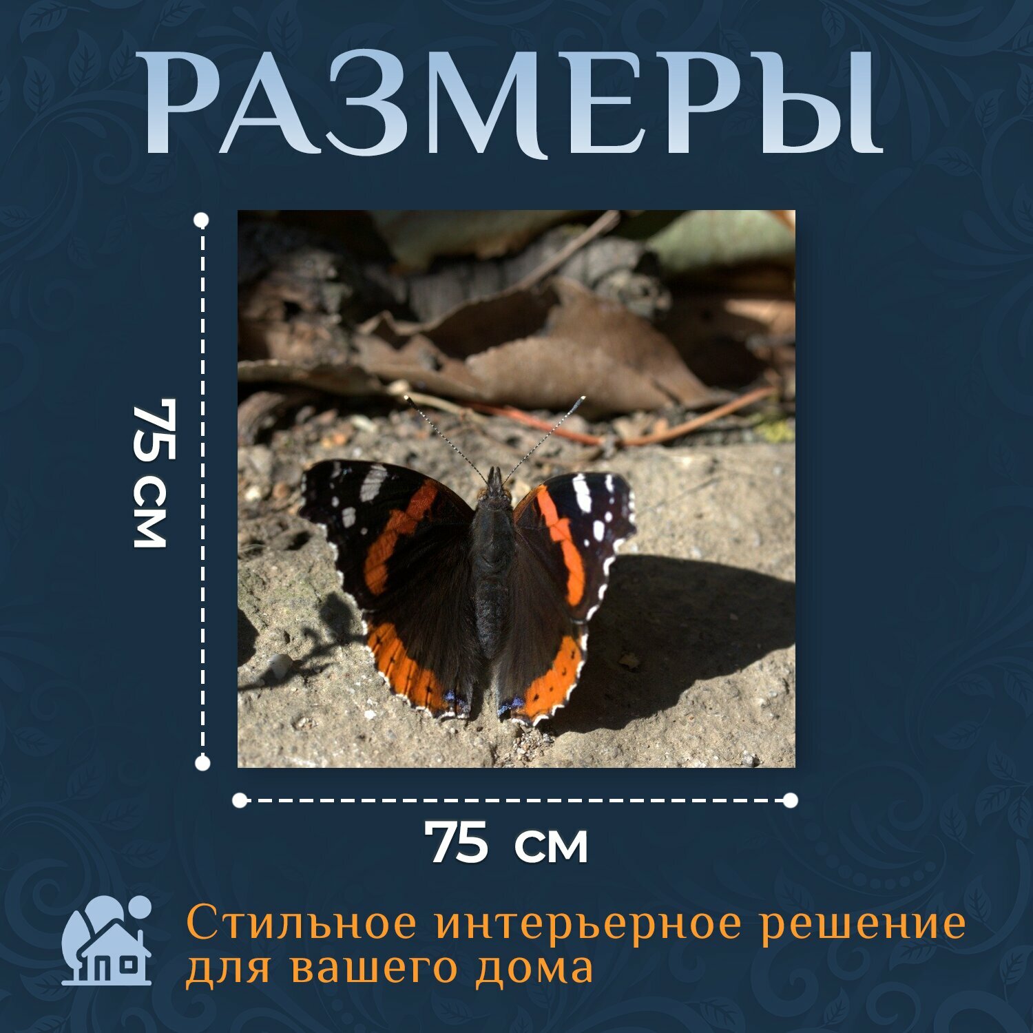 Картина на холсте "Бабочка, чернить, красный" на подрамнике 75х75 см. для интерьера информация: