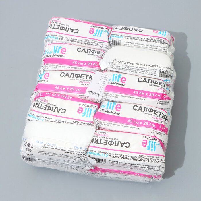 Отзывы на Салфетки марлевые медицинские 5 шт/уп двухслойные стерильные 45 х 29 см, 26 гр/м2, 20 наб.