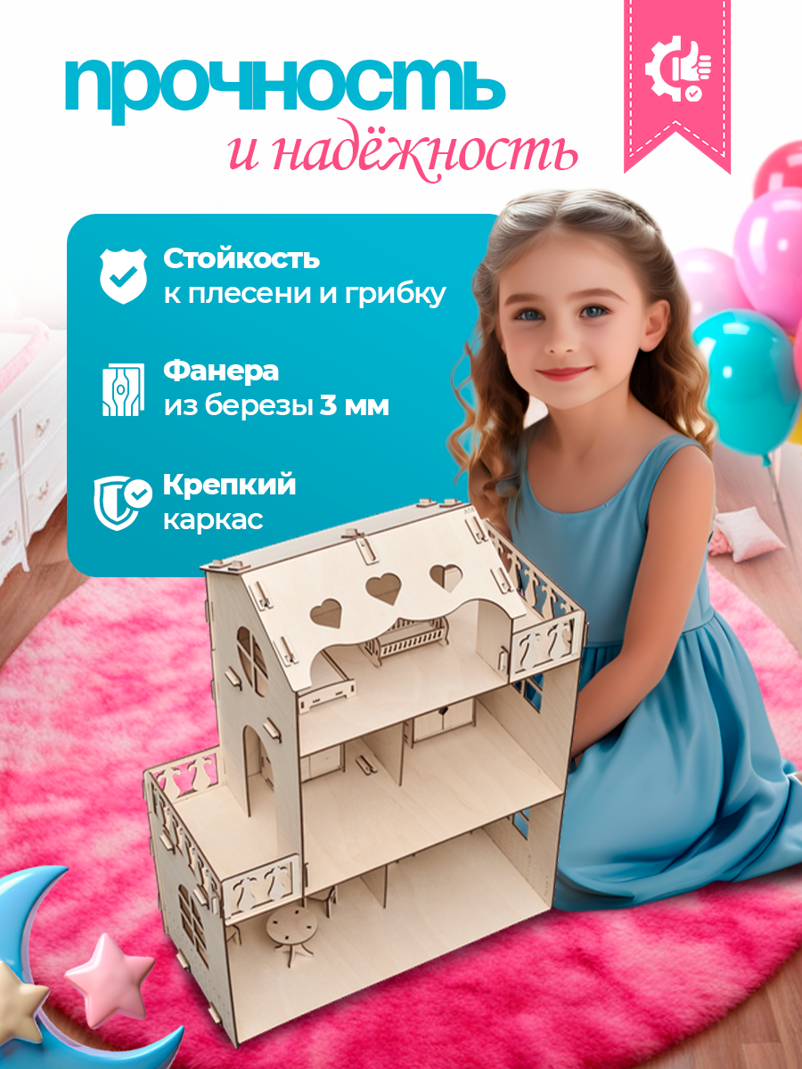 Отзывы на Кукольный домик деревянный София мини с мебелью для кукол барби до 20 см