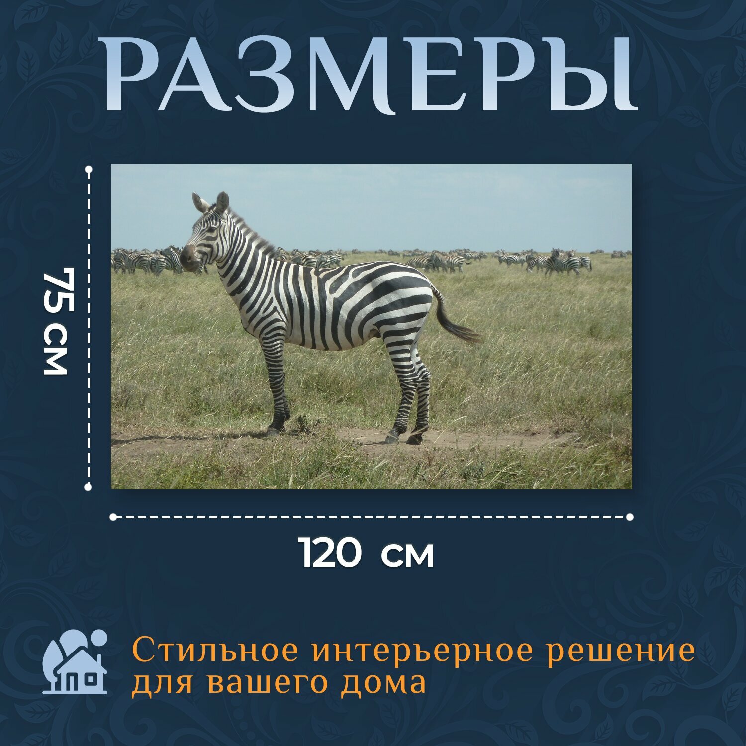 Картина на холсте "Зебра, сафари, африке" на подрамнике 120х75 см. для интерьера информация: