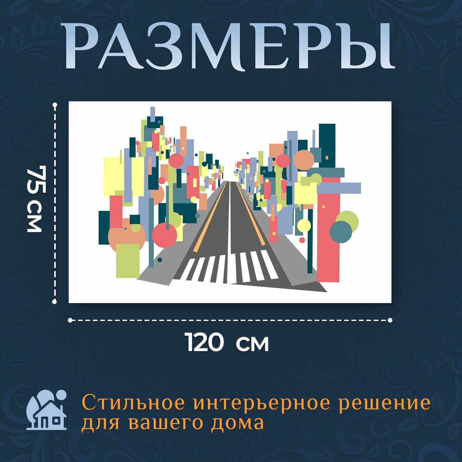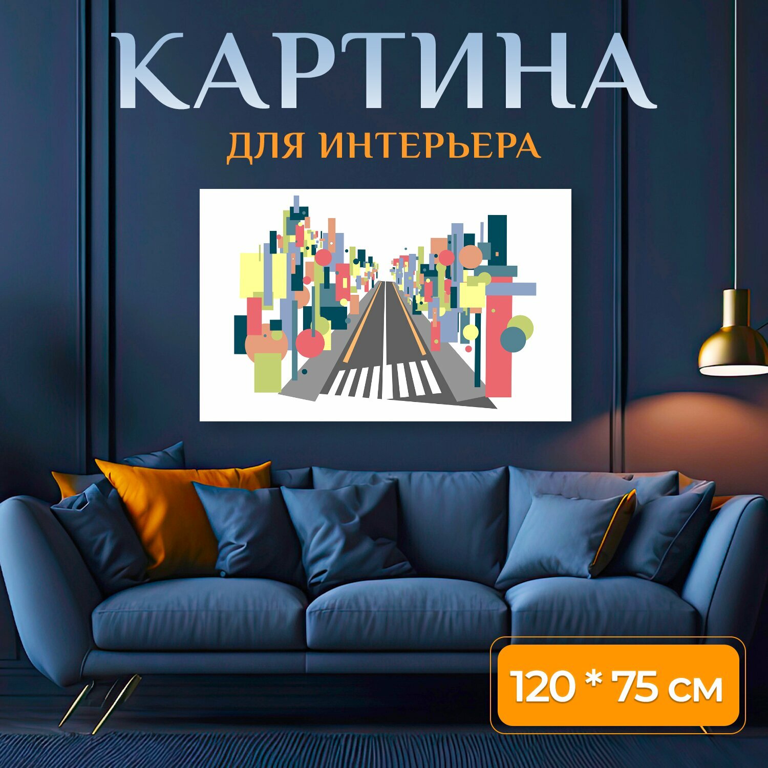 Картина на холсте "Улица, через, город" на подрамнике 120х75 см. для интерьера информация: