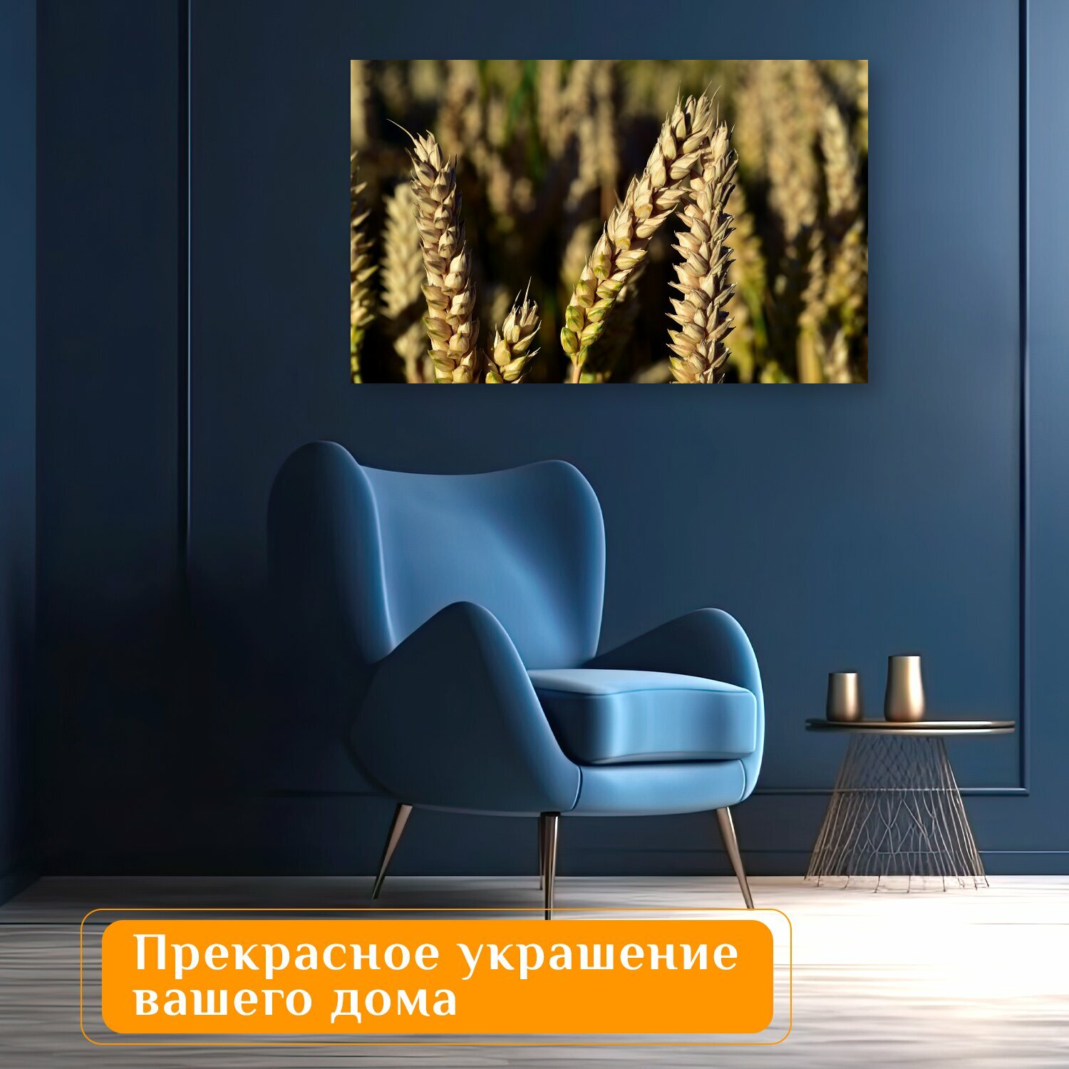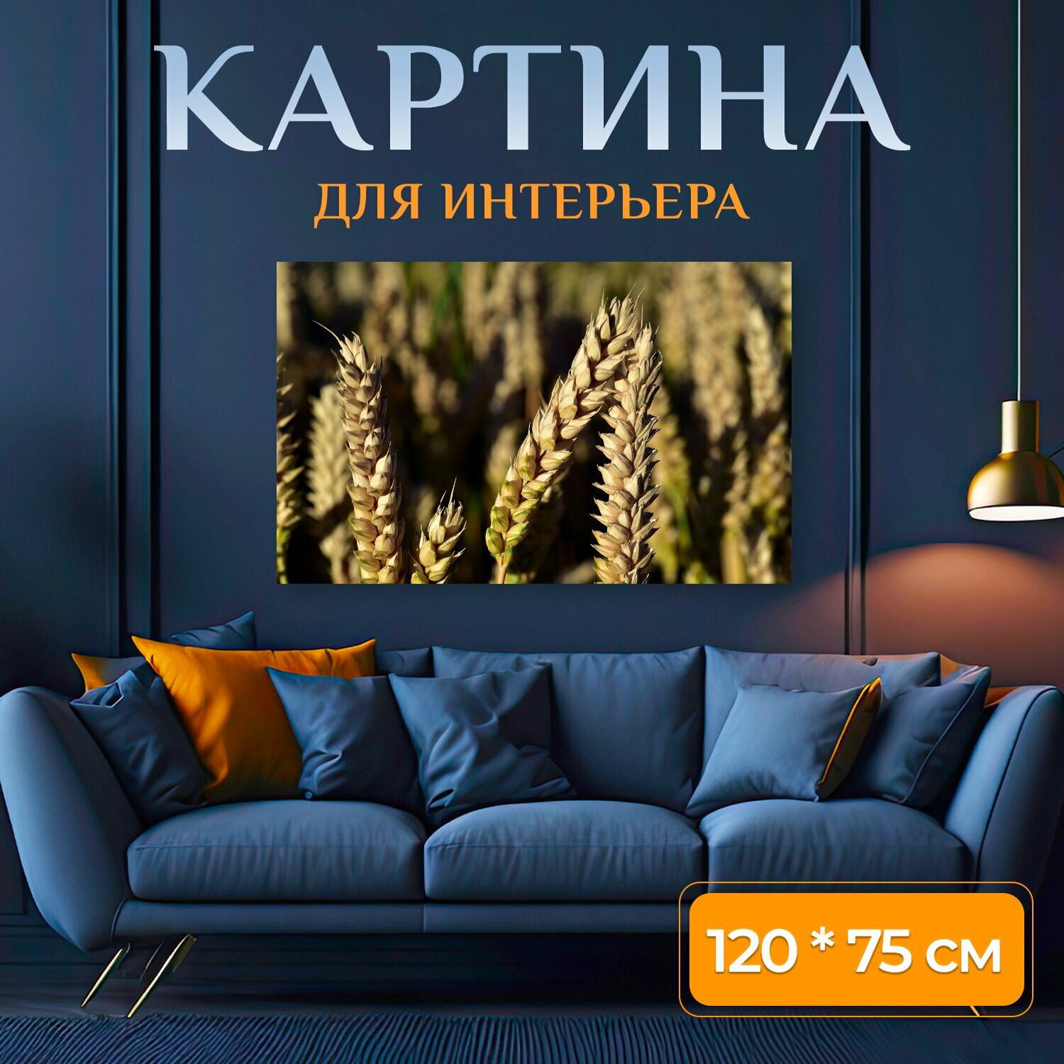 Картина на холсте "Пшеница, пшеничное поле, колосья пшеницы" на подрамнике 120х75 см. для интерьера информация: