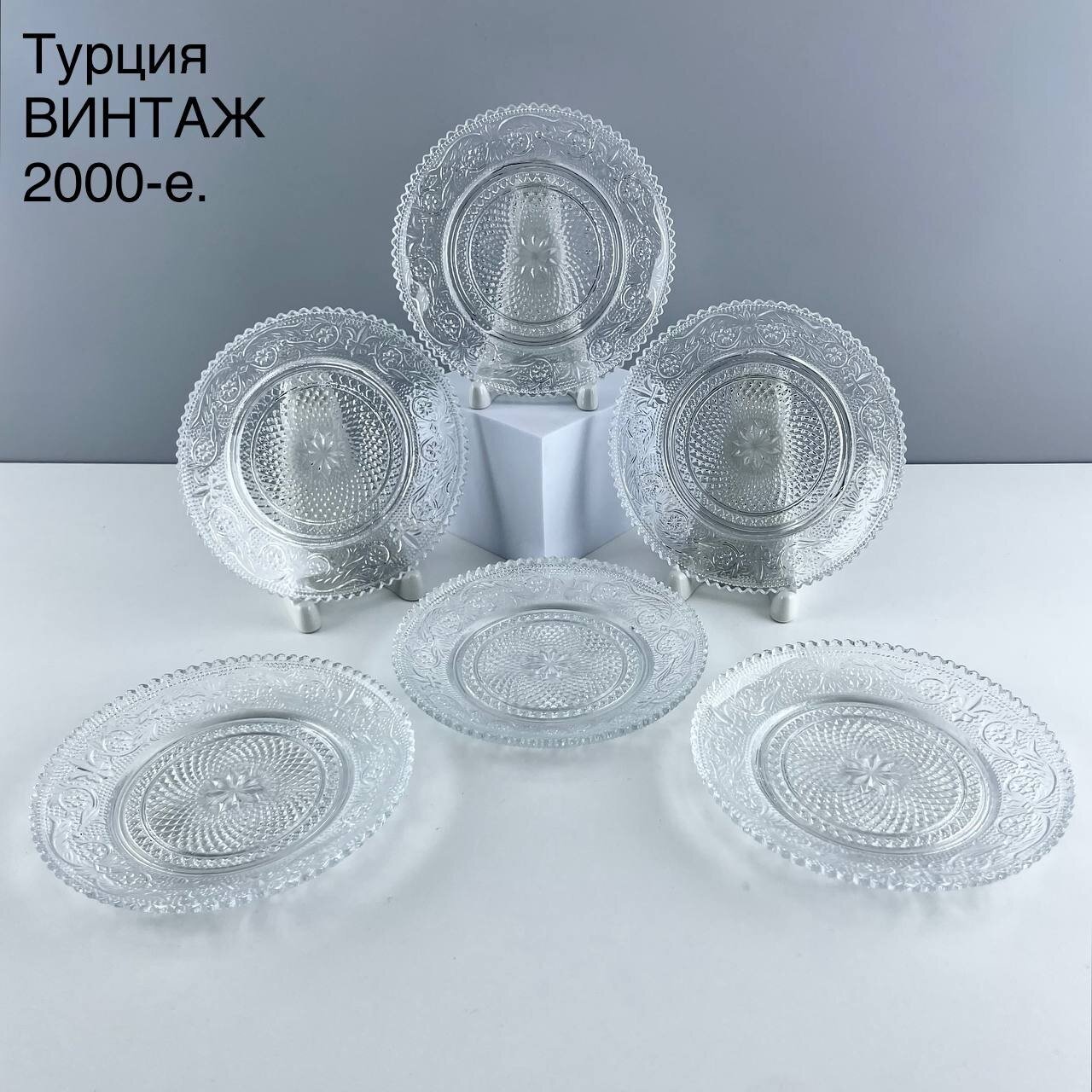 10 цен на Винтажные блюдца "Konya". Набор 6 шт. Стекло Pasabahce. Турция, 2000-е.