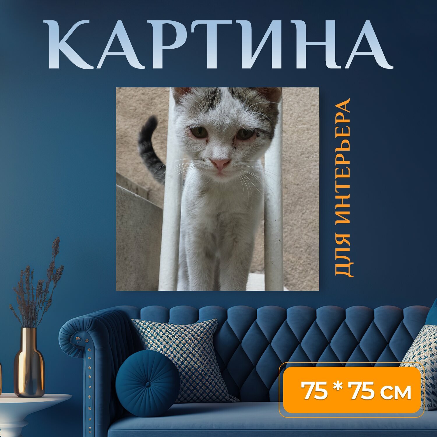 10 цен на Картина на холсте "Кошка, животное, портрет" на подрамнике 75х75 см. для интерьера