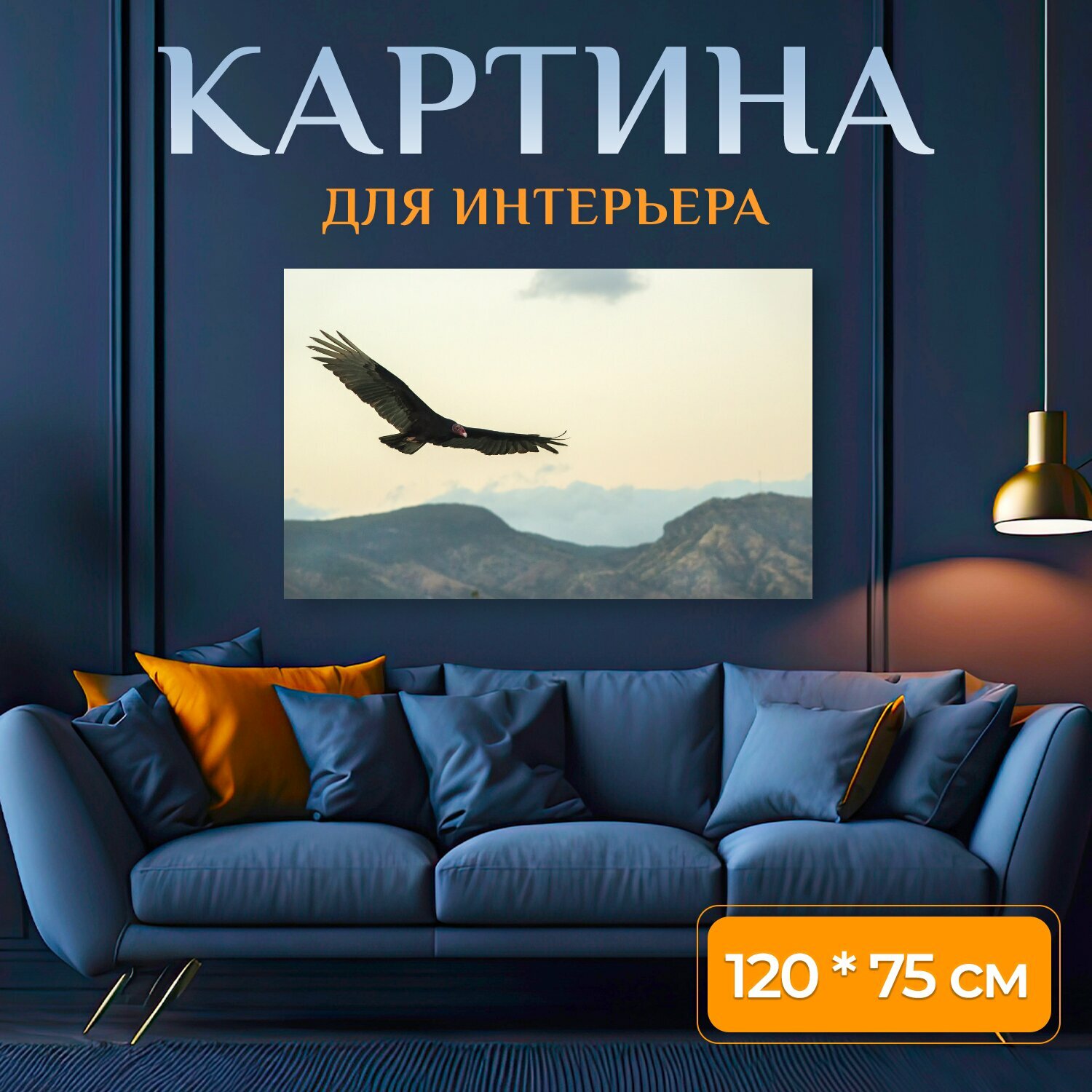 10 цен на Картина на холсте "Птица, добычей, стервятник" на подрамнике 120х75 см. для интерьера