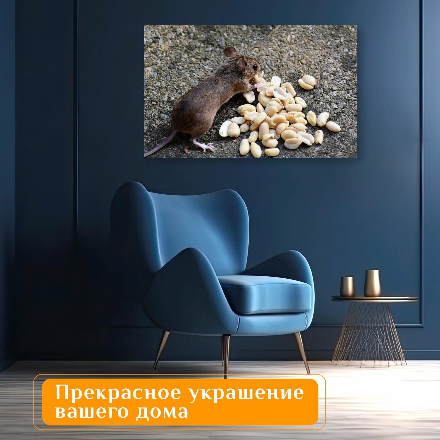 Картина на холсте "Деревянная мышь, грызун, собирательство" на подрамнике 120х75 см. для интерьера информация: