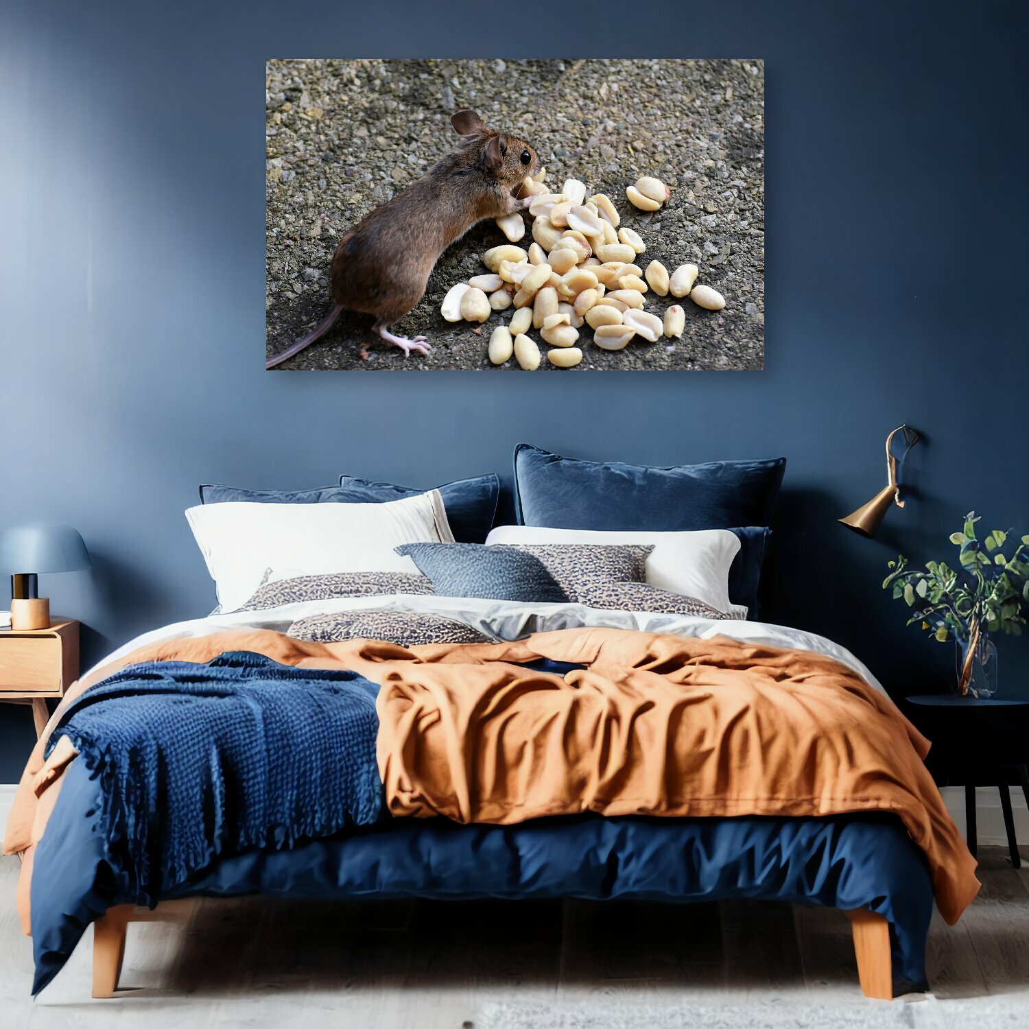 10 цен на Картина на холсте "Деревянная мышь, грызун, собирательство" на подрамнике 120х75 см. для интерьера