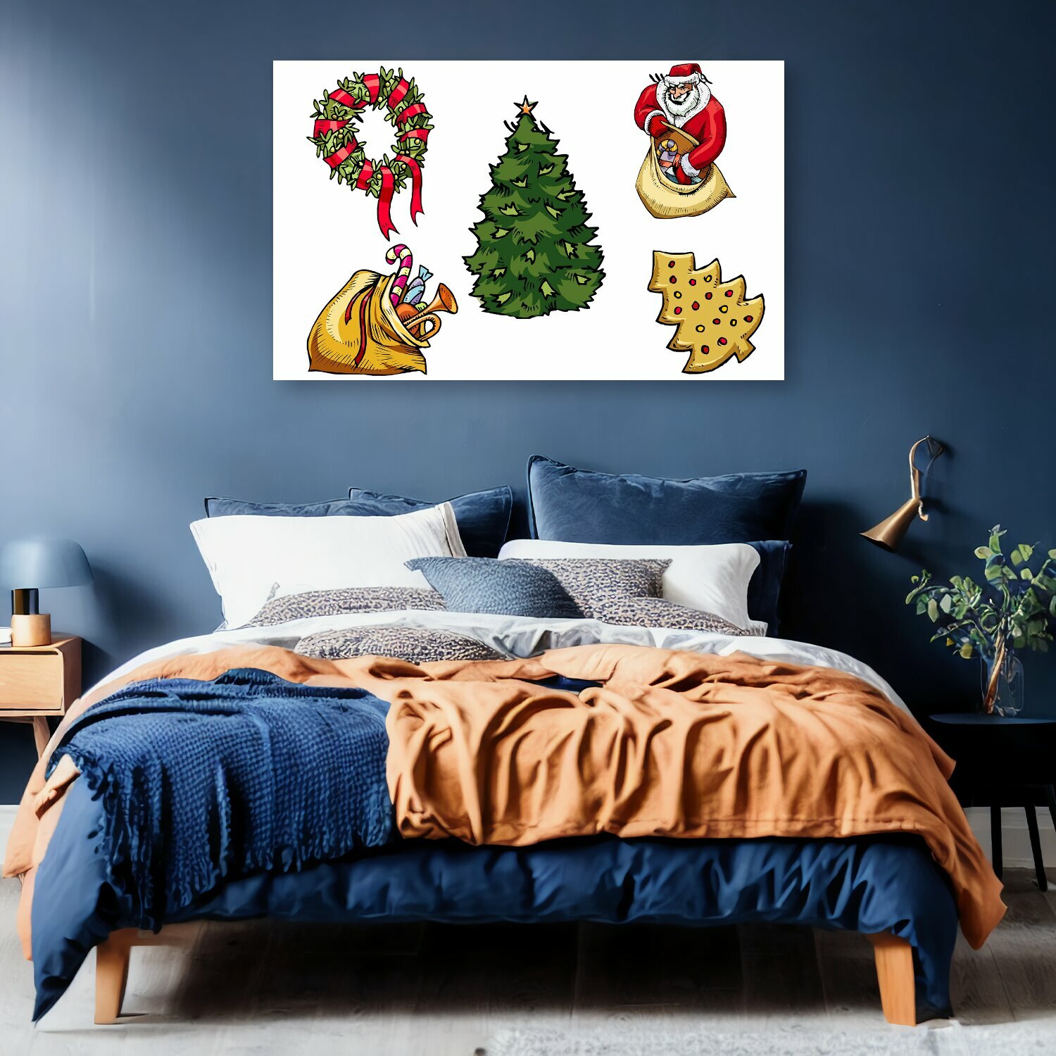10 цен на Картина на холсте "Рождество, коллаж, санта" на подрамнике 120х75 см. для интерьера