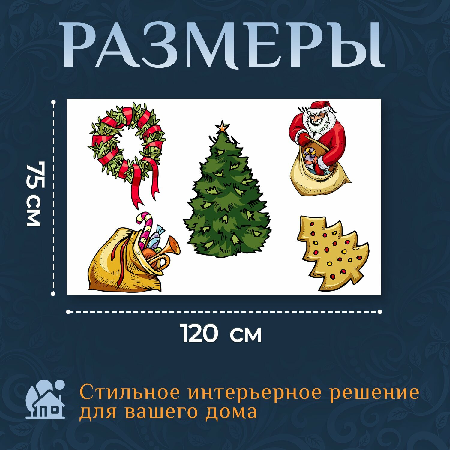 Отзывы на Картина на холсте "Рождество, коллаж, санта" на подрамнике 120х75 см. для интерьера
